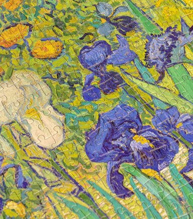 Dimensions: 70 cm x 50 cm 27.5" x 19.5" 1,000 pieces About Irises Plagued by mental illness throughout his life, prolific Dutch painter Vincent van Gogh chose to enter an asylum in Saint-Rémy, France in May 1889, where, in the last year before his death, he created almost 130 paintings. Irises was the first painting Van Gogh started after his arrival.