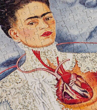 Dimensions : 50 cm x 70 cm 19.5" x 27.5" 1,000 pieces © Banco de México Diego Rivera Frida Kahlo Museums Trust, Mexico, D.F. / SOCAN (2021) About The Two Fridas The Two Fridas is a portrait of love, heartbreak and duality. Almost life-sized, it was Kahlo's largest painting and a testament to her emotional suffering.