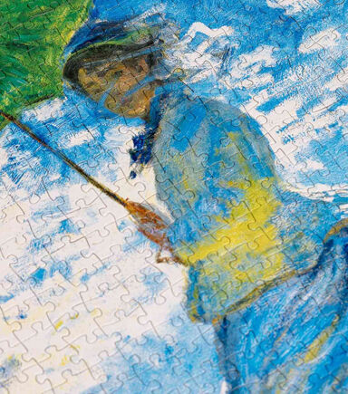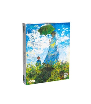Dimensions : 50 cm x 70 cm 19.5" x 27.5 cm 1,000 pieces About Woman with a Parasol In Woman with a Parasol – Madame Monet and Her Son (1875), Claude Monet demonstrates that he is as talented a figure portraitist as a landscape artist. He captures his wife and son in an unexpected moment while walking on a windy summer’s day. Sunlight shines upon her back, while shades of yellow from the flowers below dapple her front.