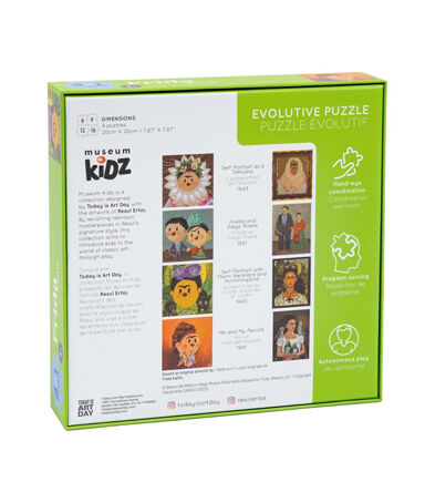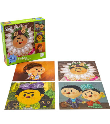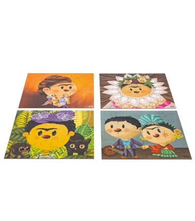 Dive into Frida's World: Immerse yourself in the vibrant and creative world of Frida Kahlo with this engaging 4-in-1 puzzle. Designed for little hands and curious minds, this unique puzzle features four of Frida Kahlo’s most iconic works - "Self-Portrait as a Tehuana," "Frieda and Diego Rivera," "Self-Portrait with Thorn Necklace and Hummingbird," and "Me and My Parrots."