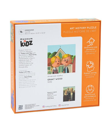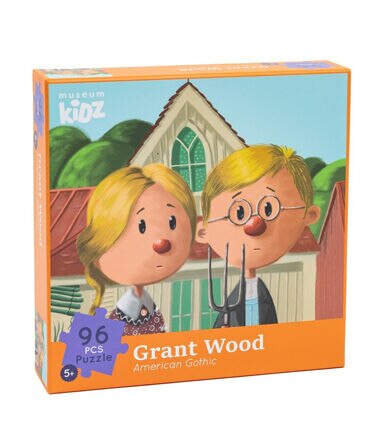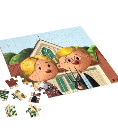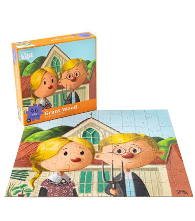Artistic Puzzling: Piece together a charming portrait of 1930s rural America with this stylized puzzle featuring Grant Wood's iconic "American Gothic." It's a unique and artistic way to engage in a timeless masterpiece.