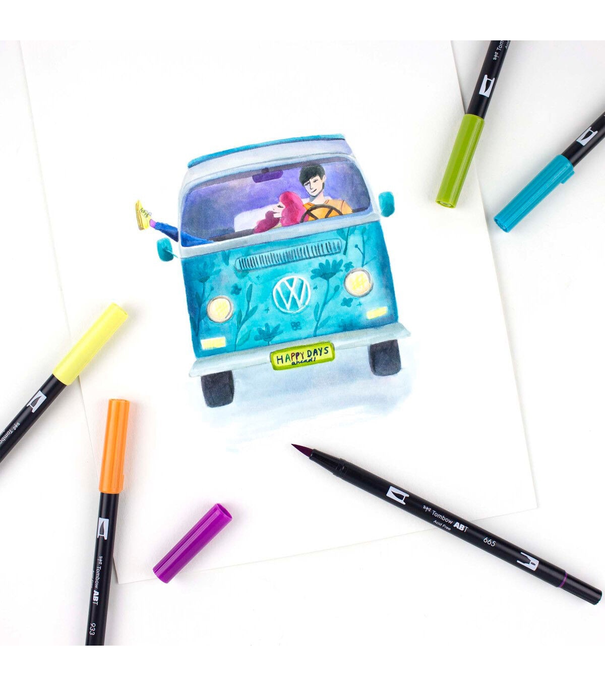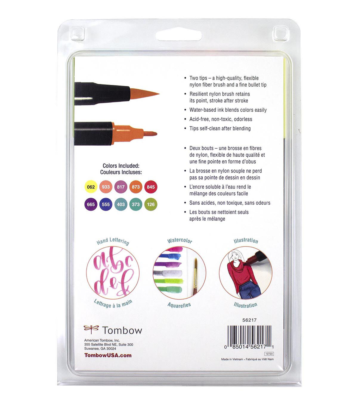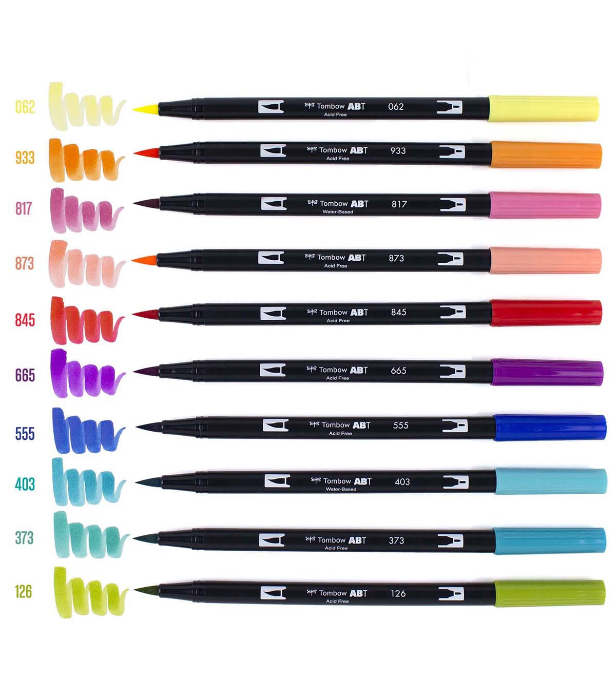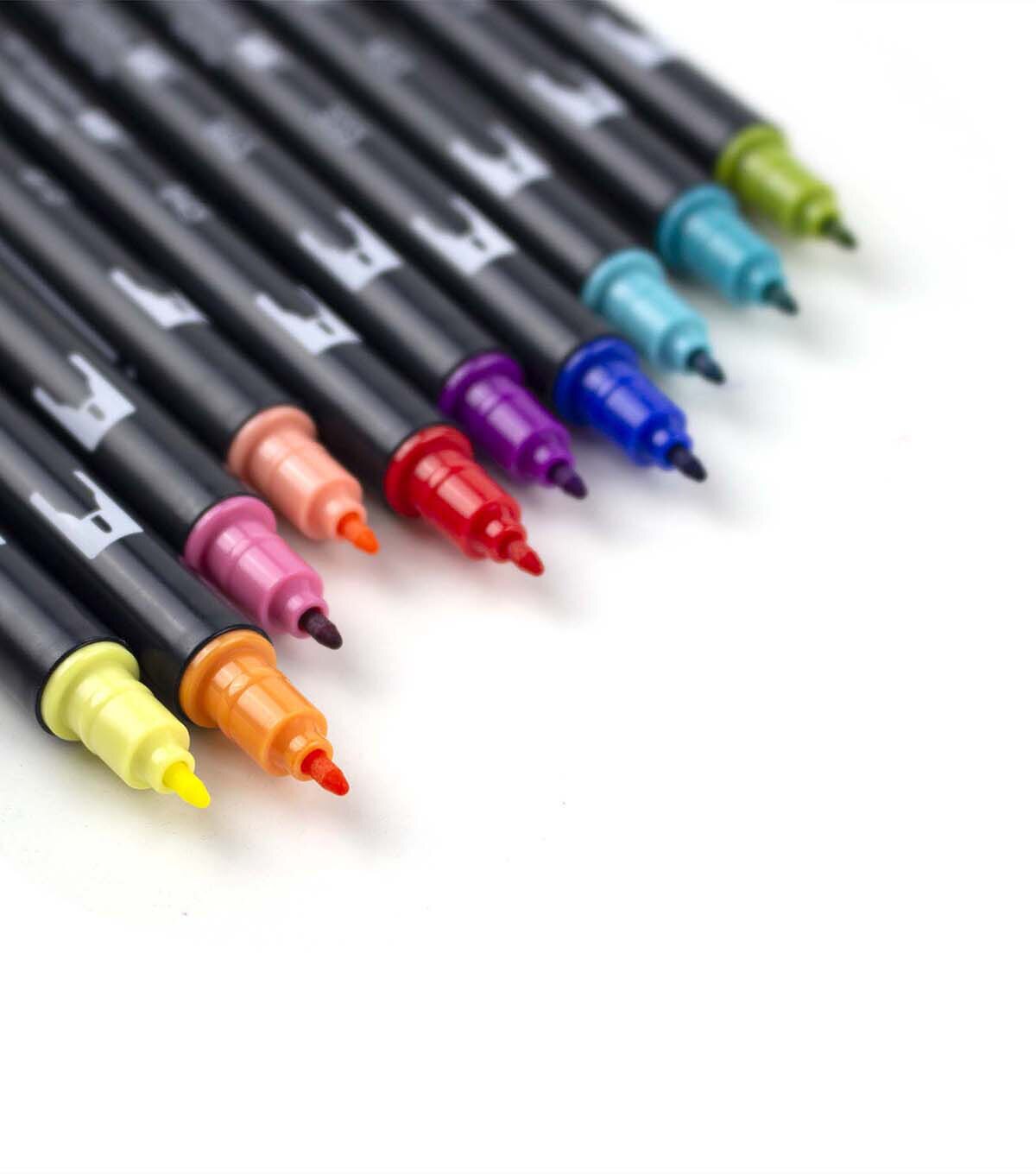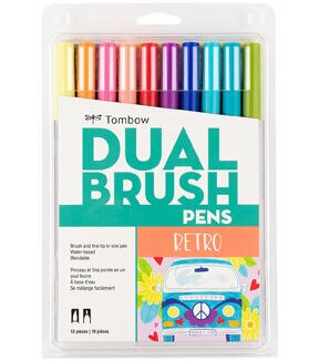 These pens are a wonderful tool for coloring, fine art, illustrations, doodling, journaling or hand lettering. They feature a dual-tip design: one brush tip for painterly lines and one fine tip for details. The brush tip is flexible and smooth, transitioning seamlessly from thin, medium to thick lines with the slightest pressure. The single ink reservoir ensures that colors match up. Blend colors on a palette and apply with the marker tips for and endless palette of color; tips self-clean after blending. This set includes a colorless blender for subtle gradients and effects, as well as nine colors: pale yellow, orange, mauve, coral, carmine, purple, ultramarine, bright blue, sea blue and light olive.