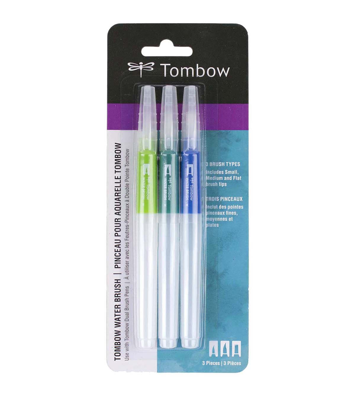 The ideal companion for the Tombow Dual Brush Pens (sold separately). Easily blend water-based markers, watercolor paint, pencils or crayons with the soft, flexible brush tip. Fill with water to blend or add ink or dye. This package contains three 6 inch long water brushes with assorted brush tips. Imported.
