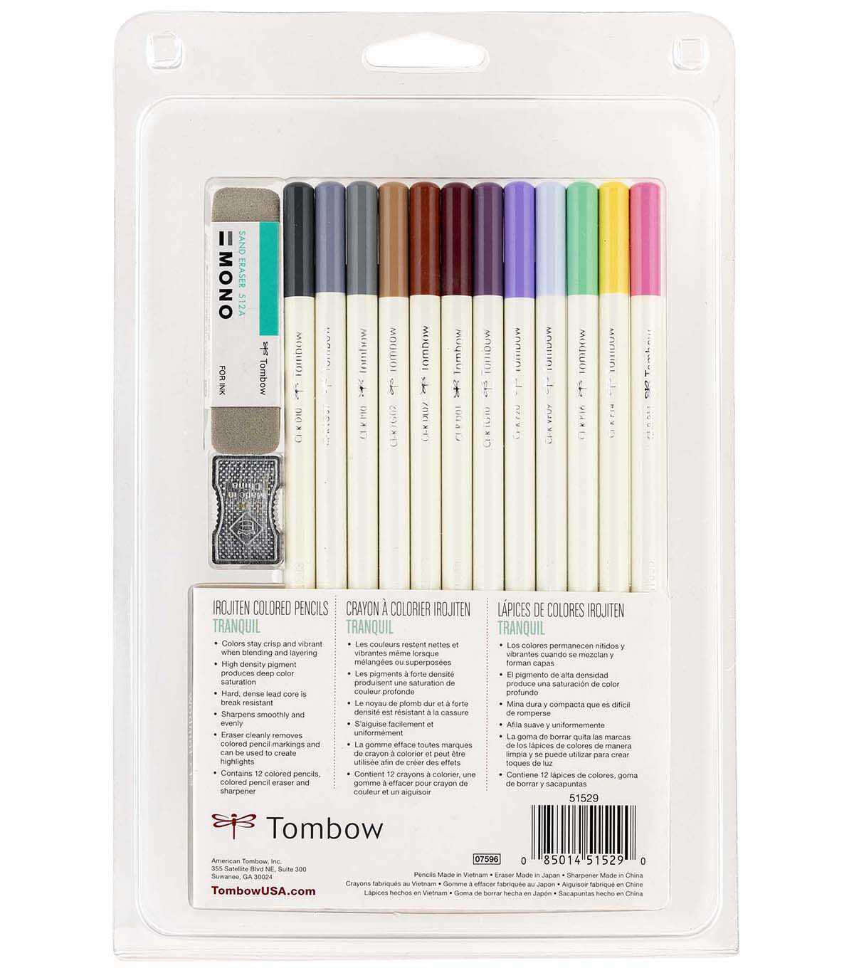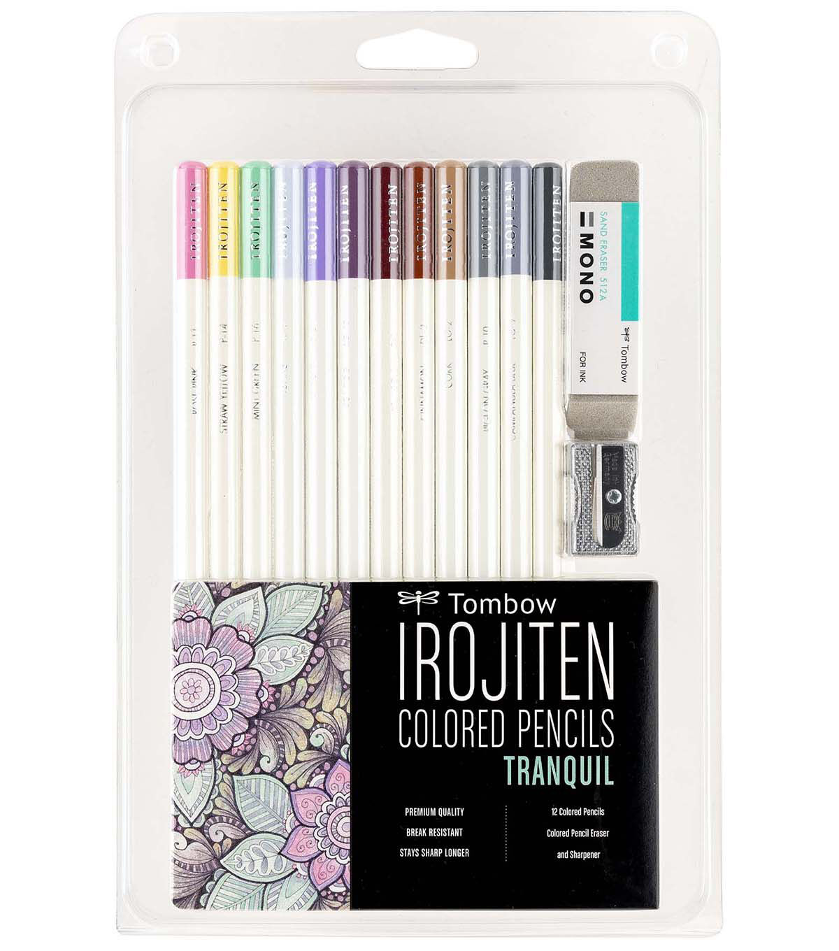 Premium colored pencils crafted with hard, dense lead for precise details and sharp lines. Perfectly centered lead core is adhered throughout the wood casing for break resistant, evenly sharpened lead. Strong pigment for deep color saturation that stays crisp and vibrant when blending and layering. White enamel finish offers a comfortable, fatigue free surface when holding for long periods. Colored pencil eraser cleanly removes colored pencil markings and can be used to create highlights. Set includes 12 colored pencils, sharpener and colored pencil eraser. Available in two pre-sorted color selections – Vivid and Tranquil.
