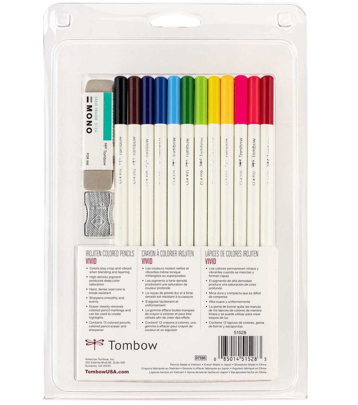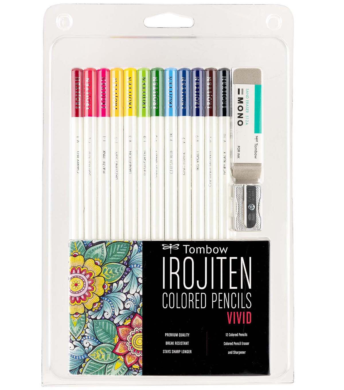 Premium colored pencils crafted with hard, dense lead for precise details and sharp lines. Perfectly centered lead core is adhered throughout the wood casing for break resistant, evenly sharpened lead. Strong pigment for deep color saturation that stays crisp and vibrant when blending and layering. White enamel finish offers a comfortable, fatigue free surface when holding for long periods. Colored pencil eraser cleanly removes colored pencil markings and can be used to create highlights. Set includes 12 colored pencils, sharpener and colored pencil eraser. Available in two pre-sorted color selections – Vivid and Tranquil.