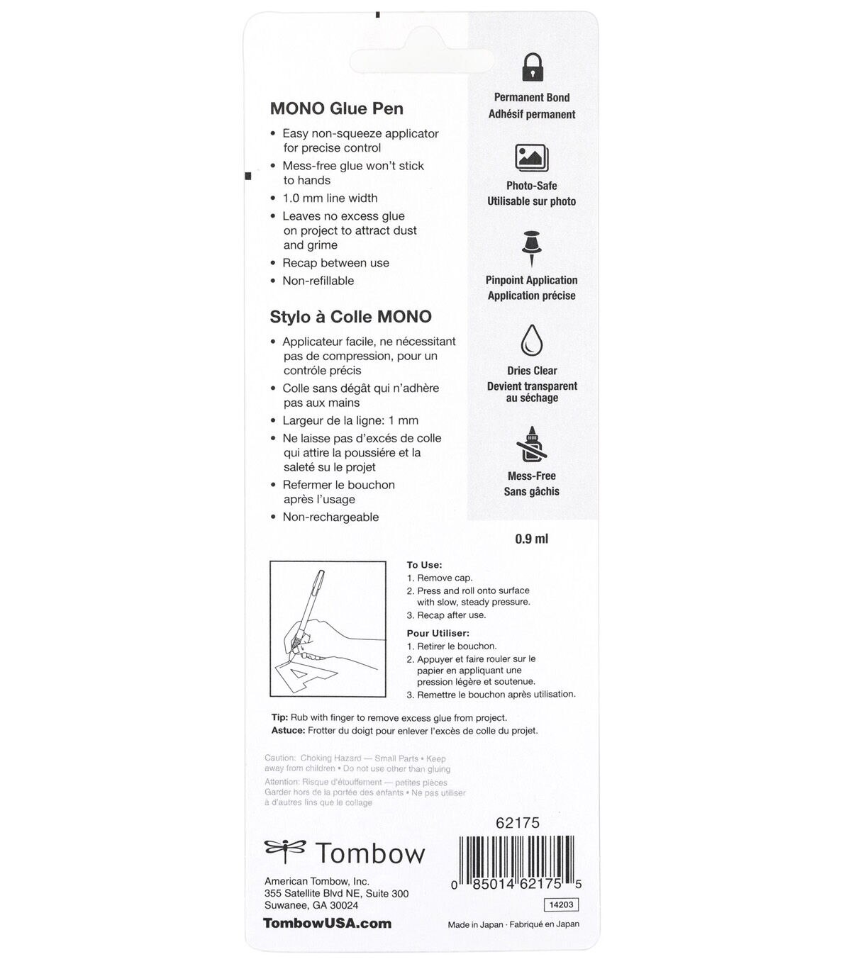 Precision glue with permanent bond –use for fonts, intricate paper cuttings, quilling, rhinestones, beads and glitter. Easy to hold pen applicator. Non-squeeze glue flows like a ballpoint pen for pinpoint coverage drying instantly. No mess and won’t stick to your hands –wipes clean without water, leaving no residue or damage to project. Clean and easy to use as a resist –draw with glue pen, let dry completely and color over top with water-basedink or watercolor paint. Create detailed patterns or shapes that will resist color washes with precision pen tip. 1.0mm line width. 0.9 ml. Acid-free and photo-safe.