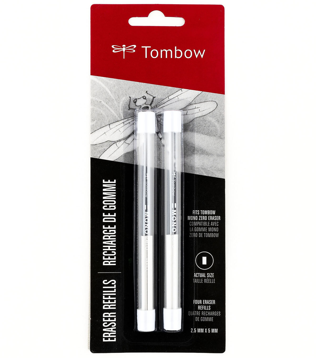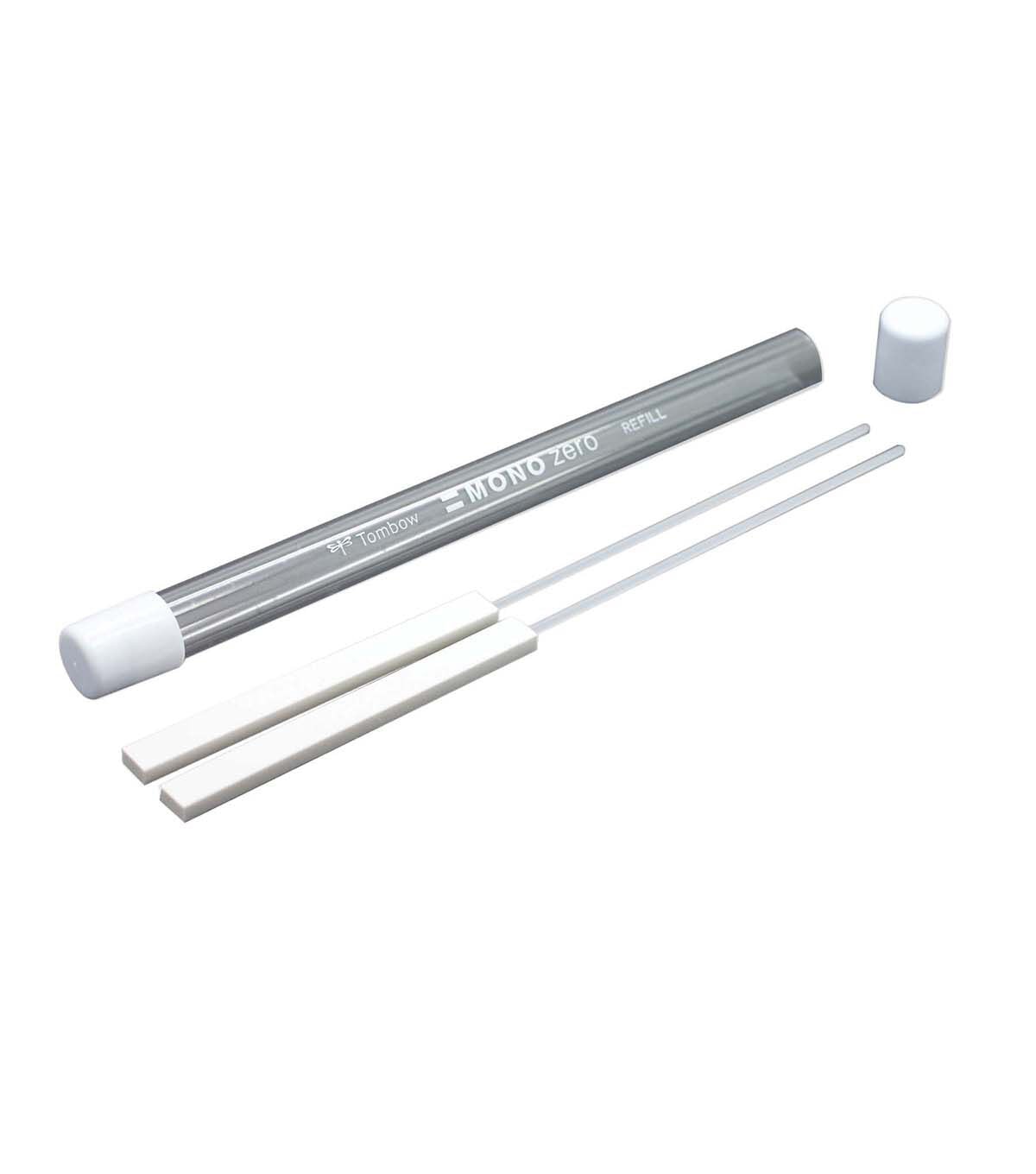 Includes 4 MONO Zero Eraser, Rectangle refills. Protect your work and erase only what you need with the MONO Zero Eraser. This high quality, precision eraser is gentle enough to erase line sketches under watercolor art without damaging paper. Pairs well with Tombow markers and won't smear ink. Rectangular tip; 2.5mm diameter.