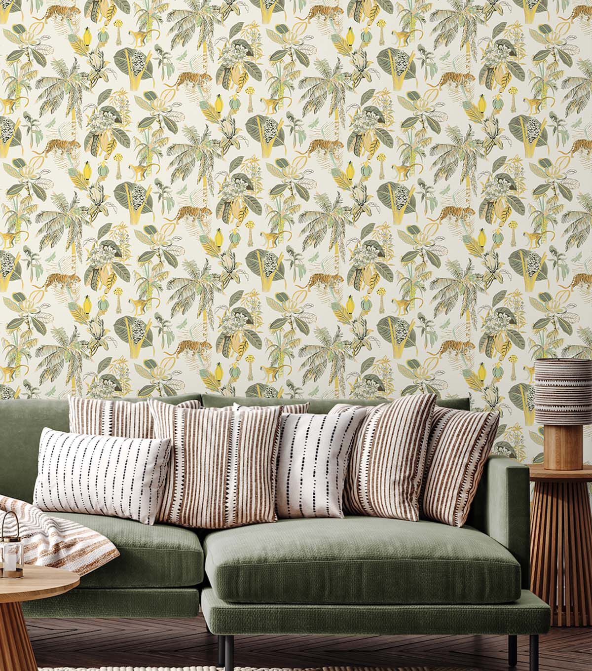 Tommy Bahama Heavenly Kingdom, a lush tropical jungle where monkeys and tigers can be seen amongst the rare flowers and feather palms brings an exotic flair to the interior. Perfect for the DIY. Easy to apply, repositionable and 100% removable without any sticky residue. Great for renters and homeowners. Printed on high quality vinyl self-adhesive. Made in the USA.
