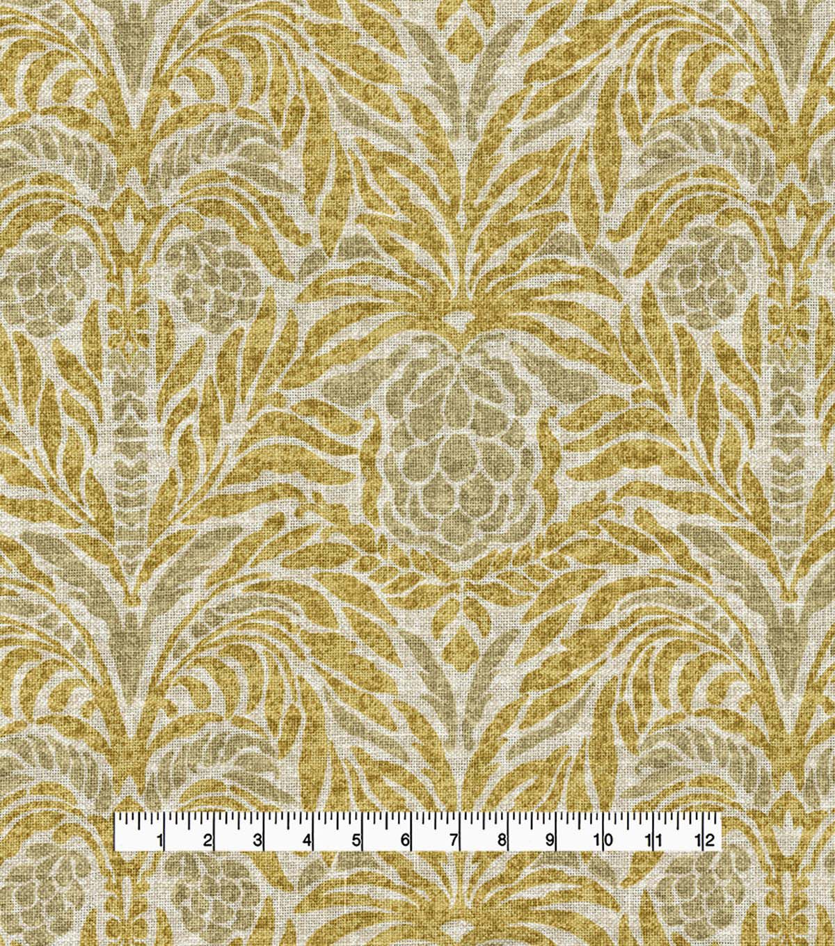 This abstract damask features an interpretative rendering of a palm tree and its adjacent pineapple. A beautiful palette complements the abstract form with dying inspired by the Javanese tradition of batik. Create beautiful upholstery and décor projects including sofas, chairs, headboards, window treatments, throw pillows, tabletop, tote bags, and more.