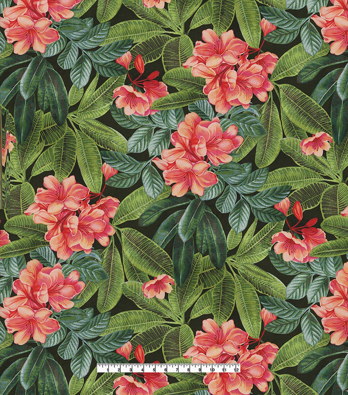 Offering a window into picturesque island living, this gorgeous allover design comes directly from the Tommy Bahama archives. Beautiful hibiscus flowers spring forth from dense layers of exquisitely detailed tropical plants. Bring the tropics indoors through headboards, drapery, upholstery, table top, throw pillows and more.