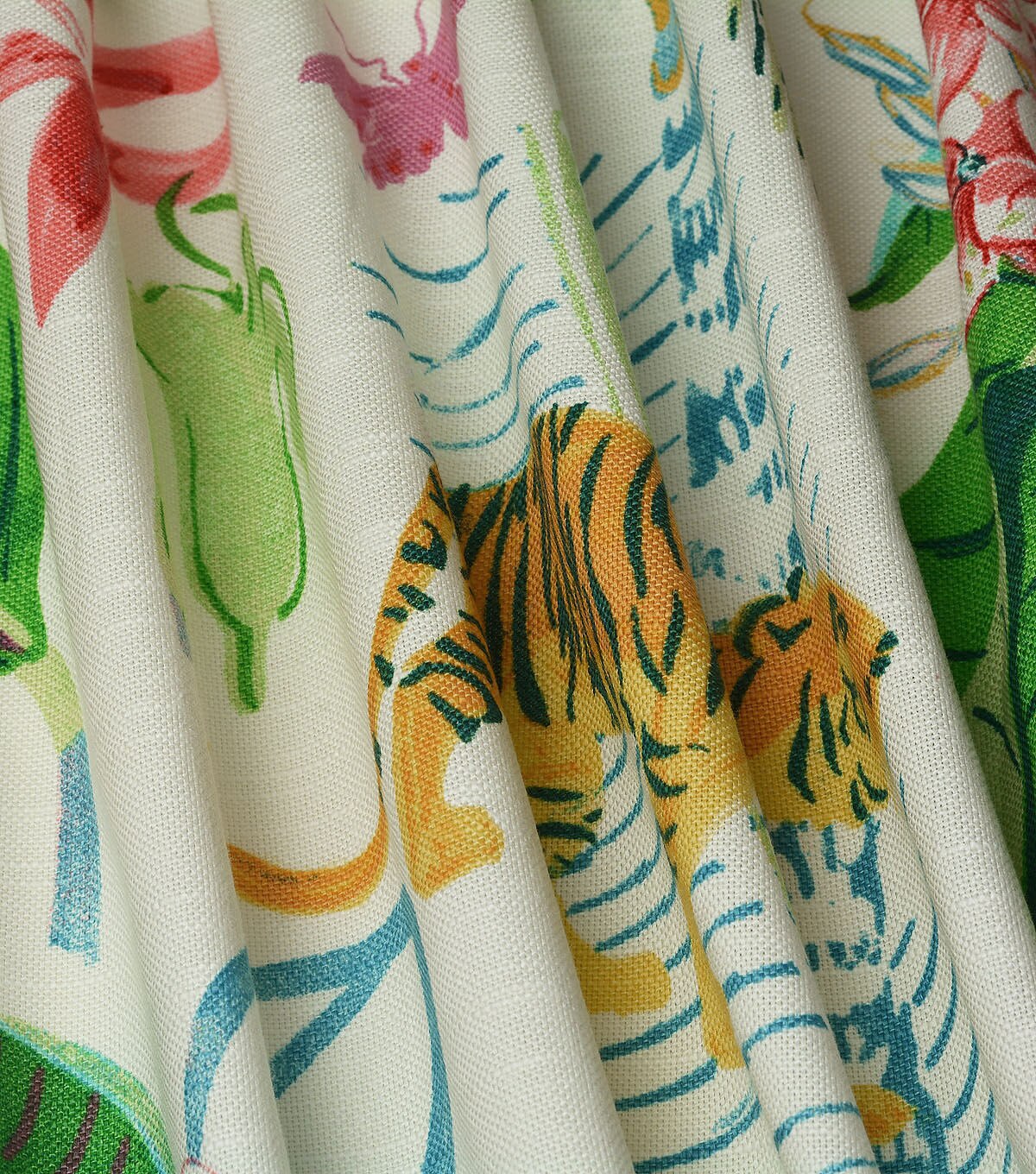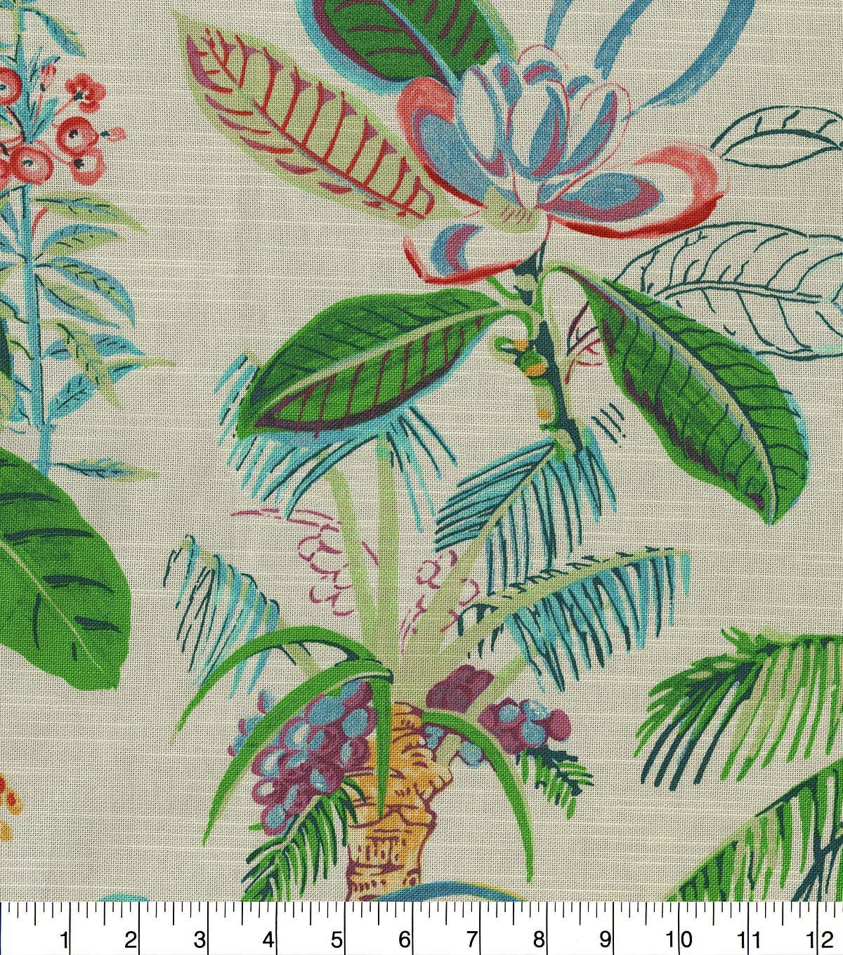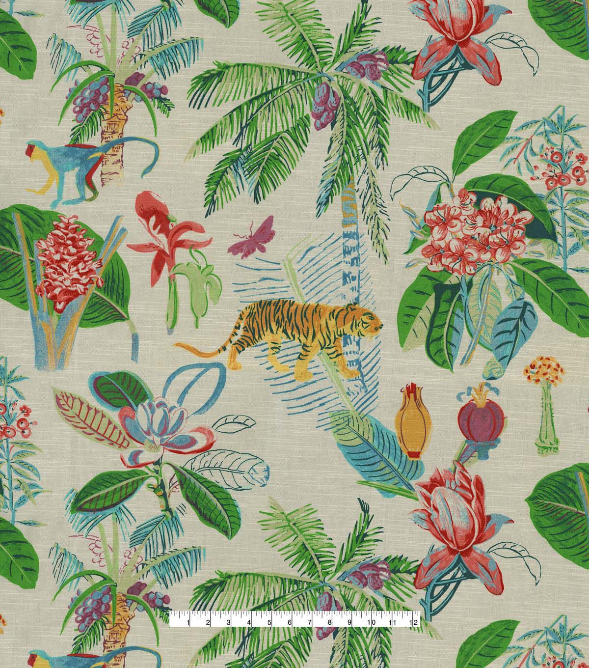 Tommy Bahama brings us to a heavenly tropical jungle fill will exotic animals, flowers and palm tree. Printed on 100% cotton and an abrasion of 24,000 double rubs.