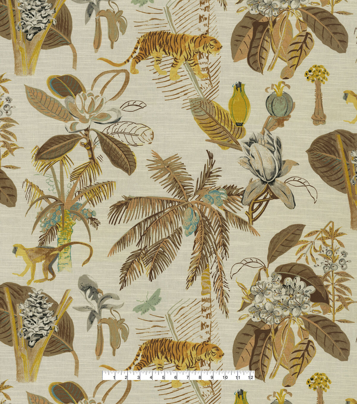 Tommy Bahama brings us to a heavenly tropical jungle fill will exotic animals, flowers and palm tree. Printed on 100% cotton and an abrasion of 24,000 double rubs.