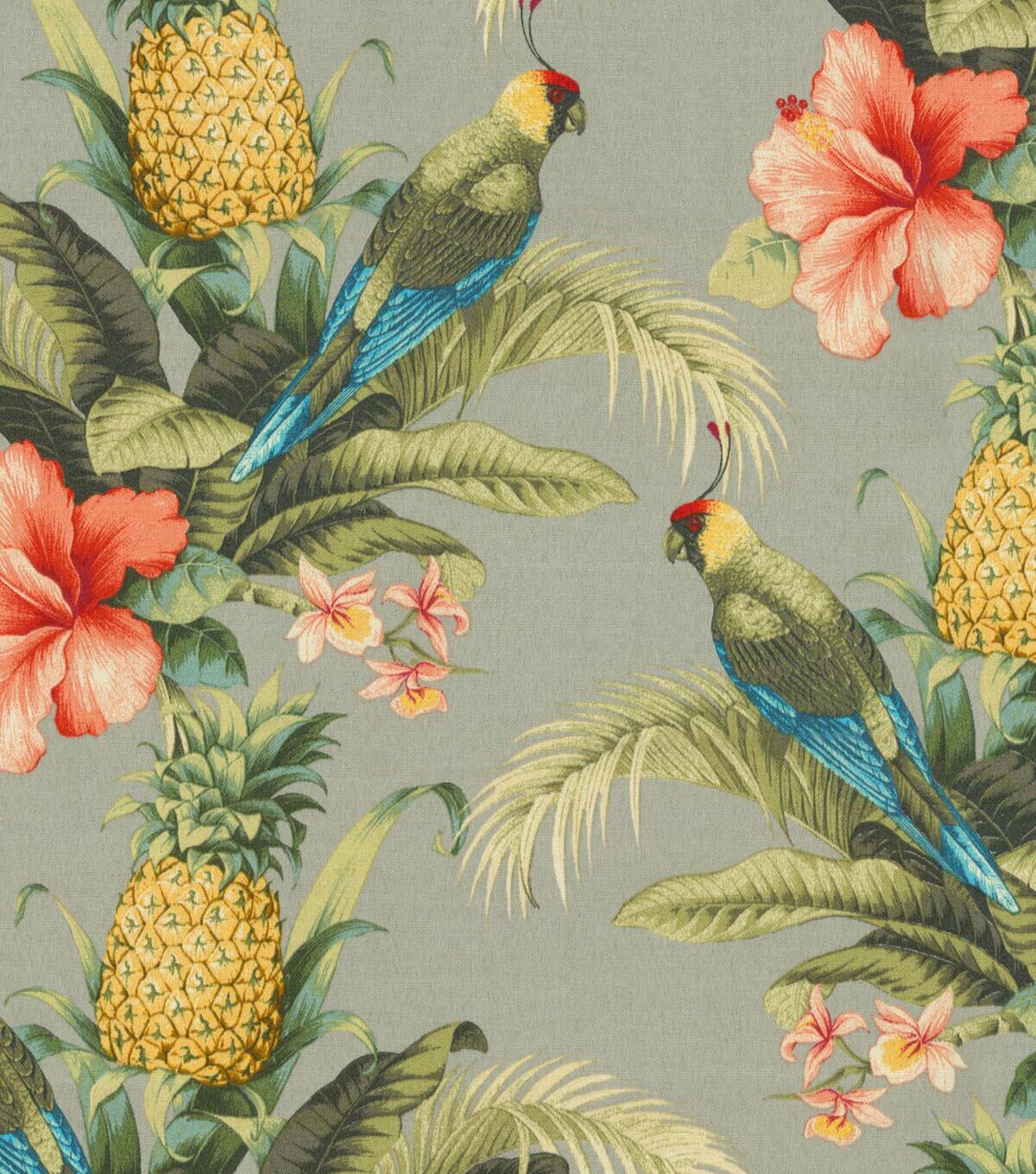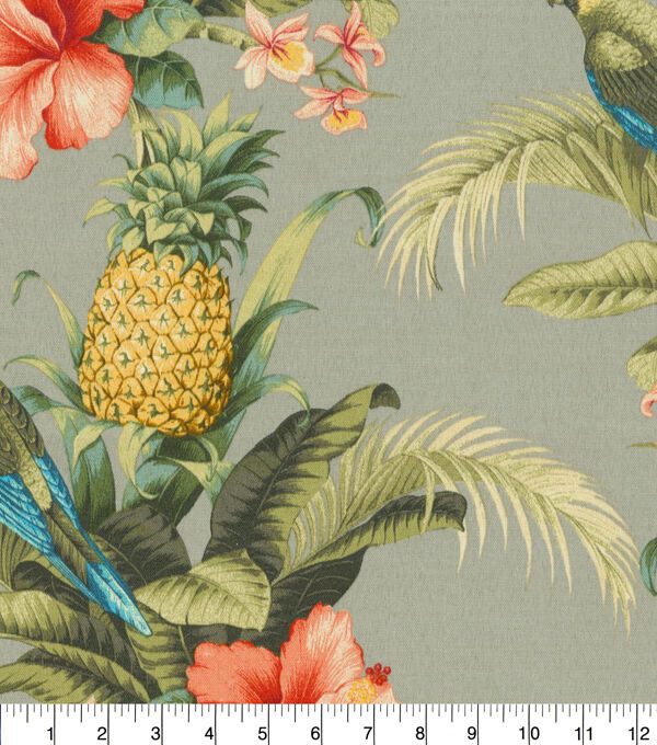 Update your backyard and patio decor using the Tommy Bahama Outdoor Fabric-Beach Bounty Tangelo. This decorative outdoor fabric features a tropical leaf, pineapple and bird pattern that'll lend a vibrant, botanical touch to all your outdoor decorating projects. It's made of 100% spun polyester, and is great for toss pillows, chair pads and more.