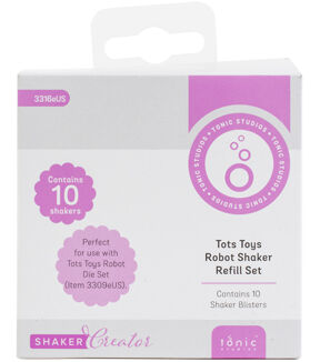 Bring your craft projects to life with the Tonic Studios 10pk Robot Tots Toys Shaker Domes. These unique and fun shaker domes are designed to complement Tonic Studios die sets, offering a variety of robot-themed designs to enhance your projects. Each 3.25x3.25 inch package contains ten shaker domes, each sold separately, giving you the flexibility to choose the perfect design for your craft. These imported shaker domes ensure a high standard of quality, making your craft projects both fun and impressive.