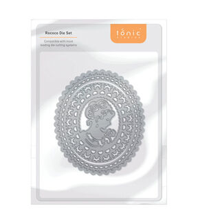 Elevate your craft projects with the ageless elegance of the Tonic Studios 3.5" Decorative Cameo Die Set. This imported set includes one die that precisely cuts a classic cameo shape, adding sophistication to any creation. Measuring 76mm x 89mm (3X3.5 inches), this die is compatible with most leading die-cutting systems. Ideal for anyone looking to add a touch of vintage elegance to their craft projects.