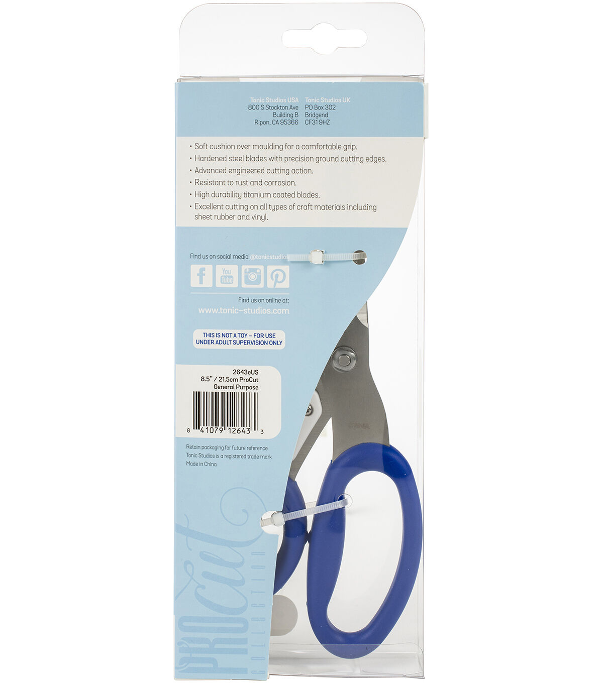 These scissors have advanced engineered cutting action, hardened steel blades with precision ground cutting edges and a soft cushion over moulding for a comfortable grip. This package contains one pair of 8.5 inch precision scissors. CAUTION: Sharp blade. Imported.