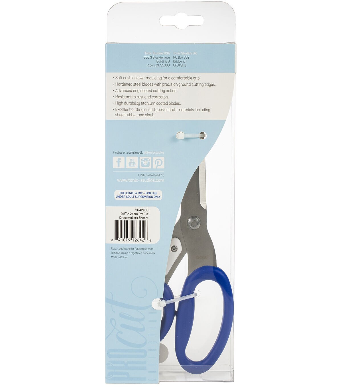 These scissors have advanced engineered cutting action, hardened steel blades with precision ground cutting edges and a soft cushion over moulding for a comfortable grip. This package contains one pair of 9.5 inch precision scissors. CAUTION: Sharp blade. Imported.