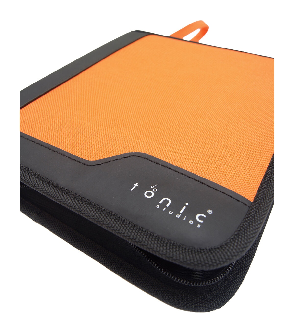 Organize and protect your cherished dies with Tonic Studios' Ring Binder Die Cut Case. Crafted with precision, this zippered case offers six clear plastic sleeves paired with magnetic storage sheets, ensuring secure and visible storage. Sized conveniently at 9x8x1-1/4 inches, it's an essential for crafters who love to keep their tools in impeccable condition. Imported.