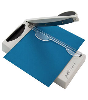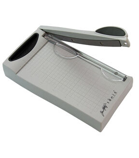 The Tim Holtz 6" Guillotine Mini Trimmer by Tonic Studios is a versatile and portable trimming tool perfect for an array of papercrafts. It offers a hardened steel precision ground blade for clean, sharp cuts every time. Its molded measuring grid and 6.25-inch cutting blade length ensure accuracy, while the finger guard holds your paper securely for the perfect cut. Lightweight and compact, this trimmer is ideal for creating card fronts or trimming photographs. Its design makes it easy to carry around, whether you're crafting at home, in a studio, or on the go. This guillotine mini trimmer is a testament to Tim Holtz and Tonic Studios' commitment to quality, innovation, and functionality in crafting tools. Imported.