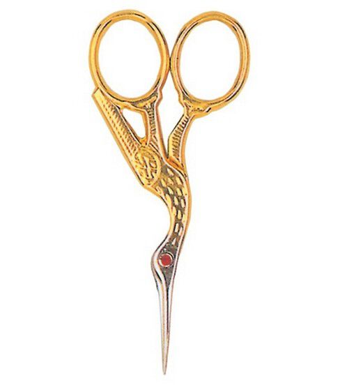 Traditional stork scissors but with a ruby red Swarovski crystal at the pivot or eye.