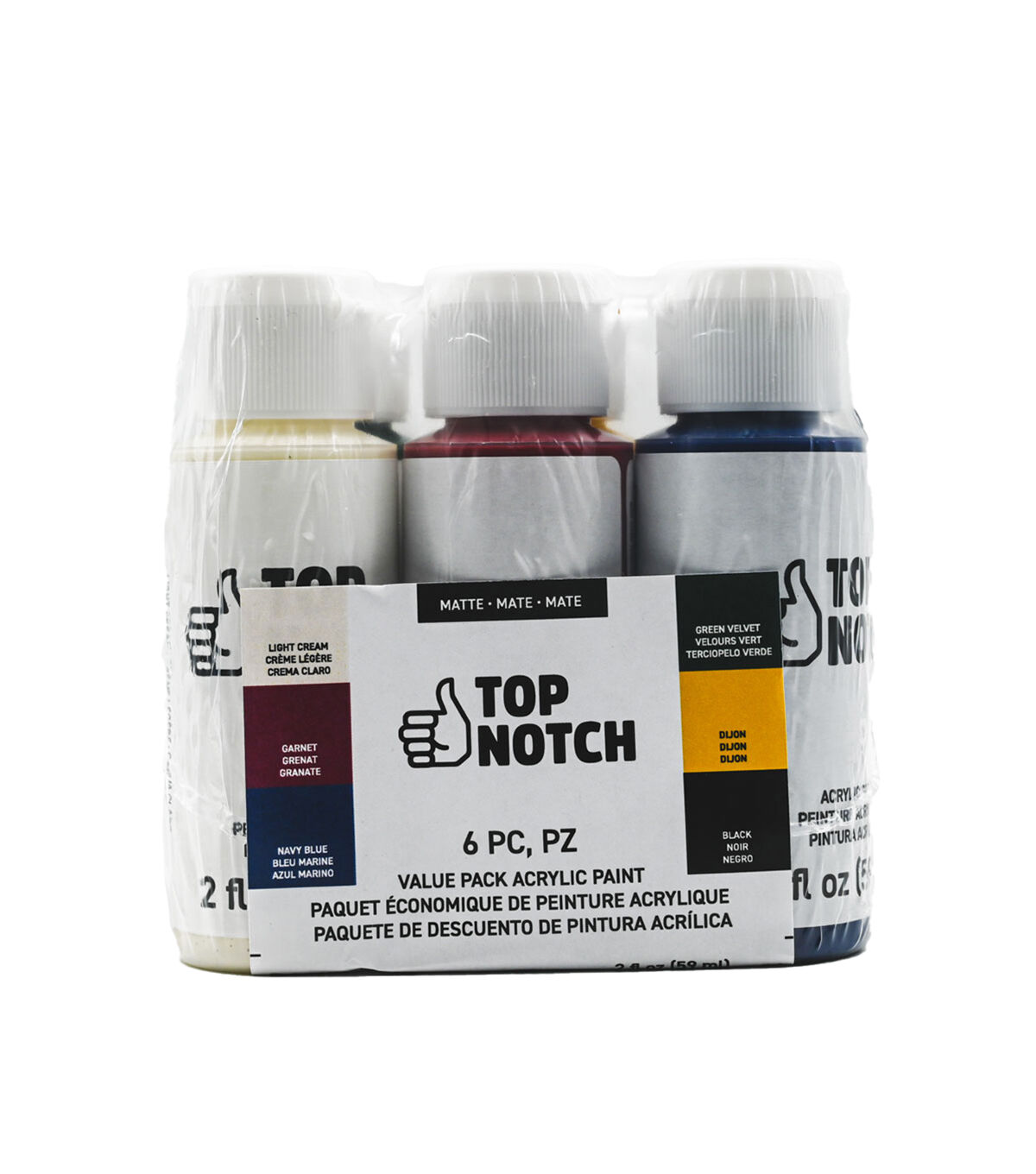 Create art, craft and home decor projects using the Holiday Rustic Colors Acrylic Paint Value Pack by Top Notch. This set includes 6 bottles of premium-quality acrylic paint in holiday rustic colors. You can use them to paint on wood, canvas or decorate rocks, bottles and more. They offer permanent coverage and can be easily cleaned with soap and water. Set includes one bottle each - light cream, garnet, navy, green velvet, Dijon, and black