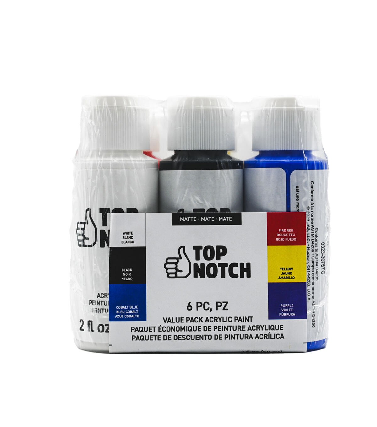 Create art, craft and home decor projects using the Patriotic Colors Acrylic Paint Value Pack by Top Notch. This set includes 6 bottles of premium-quality acrylic paint in patriotic colors. You can use them to paint on wood, canvas or decorate rocks, bottles and more. They offer permanent coverage and can be easily cleaned with soap and water. Sets includes one bottle each - white, black, cobalt blue, fire red, yellow and purple.