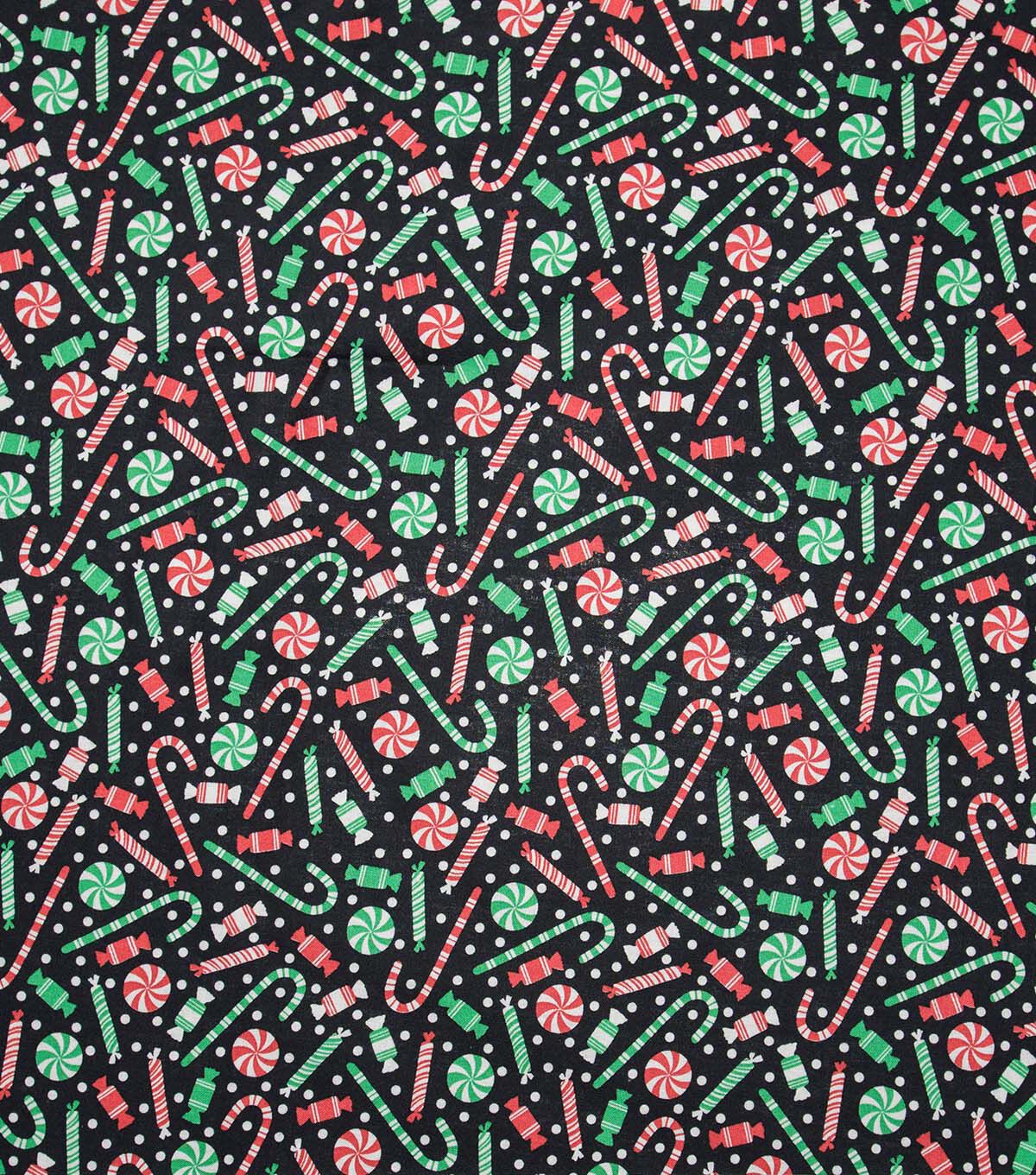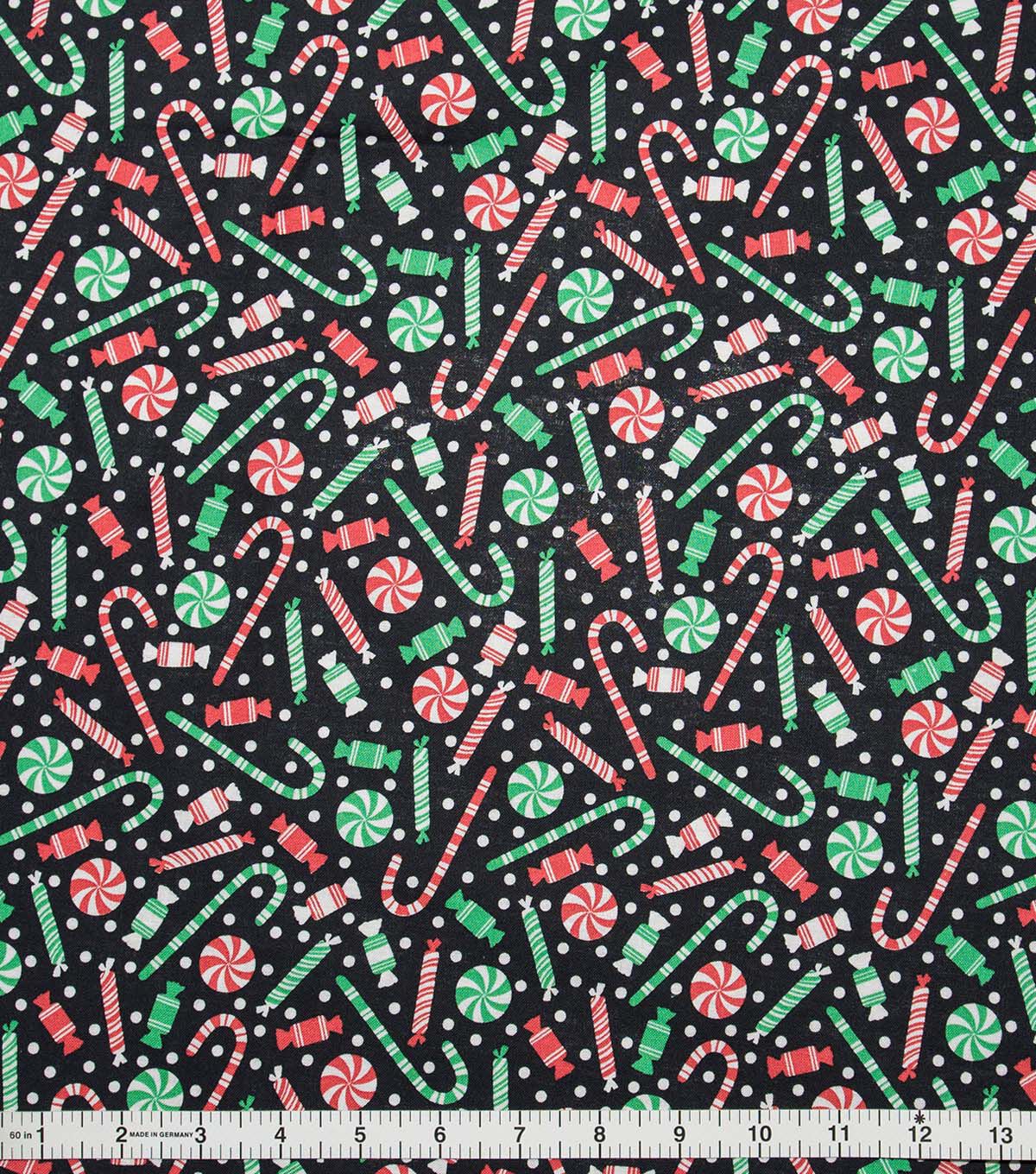 • Tossed Candies & Dots on Black Christmas Cotton Fabric