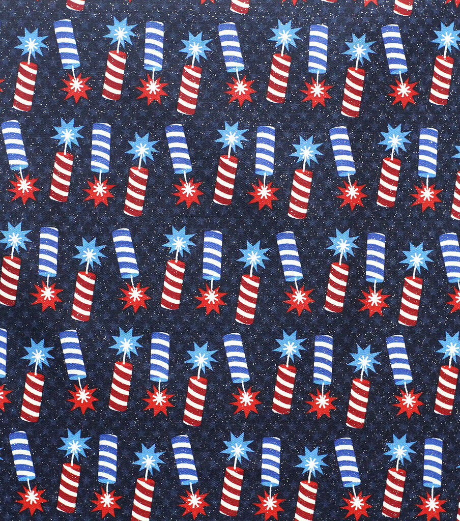 Get Ready to Sparkle with Tossed Firecrackers Patriotic Glitter Cotton Fabric