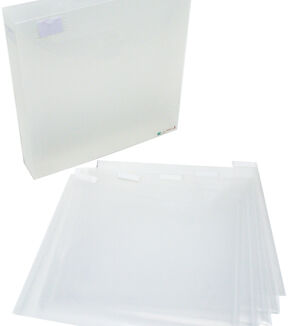 The Fab File 12x12 craft paper organizer is designed to hold all of your 12x12 items, making it perfect for scrapbooking and craft paper. Organize your papers neatly by color or category for easy reference. Sturdy, lightweight construction plus a tab-lock lid make Fab Files a durable, safe place to entrust your special items. This set includes: 13x13x2 inch Fab File Box; five Tabbed 12.5x12.5 inch Clear File Pockets; and five White Label Stickers. Imported.