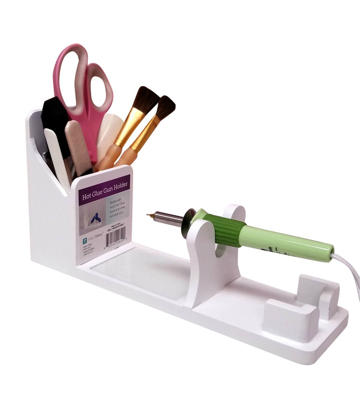 The solution to drippy glue guns is here! With the Hot Glue Gun Holder by Totally-Tiffany, you now have the perfect place to store your hot glue gun while you are crafting.