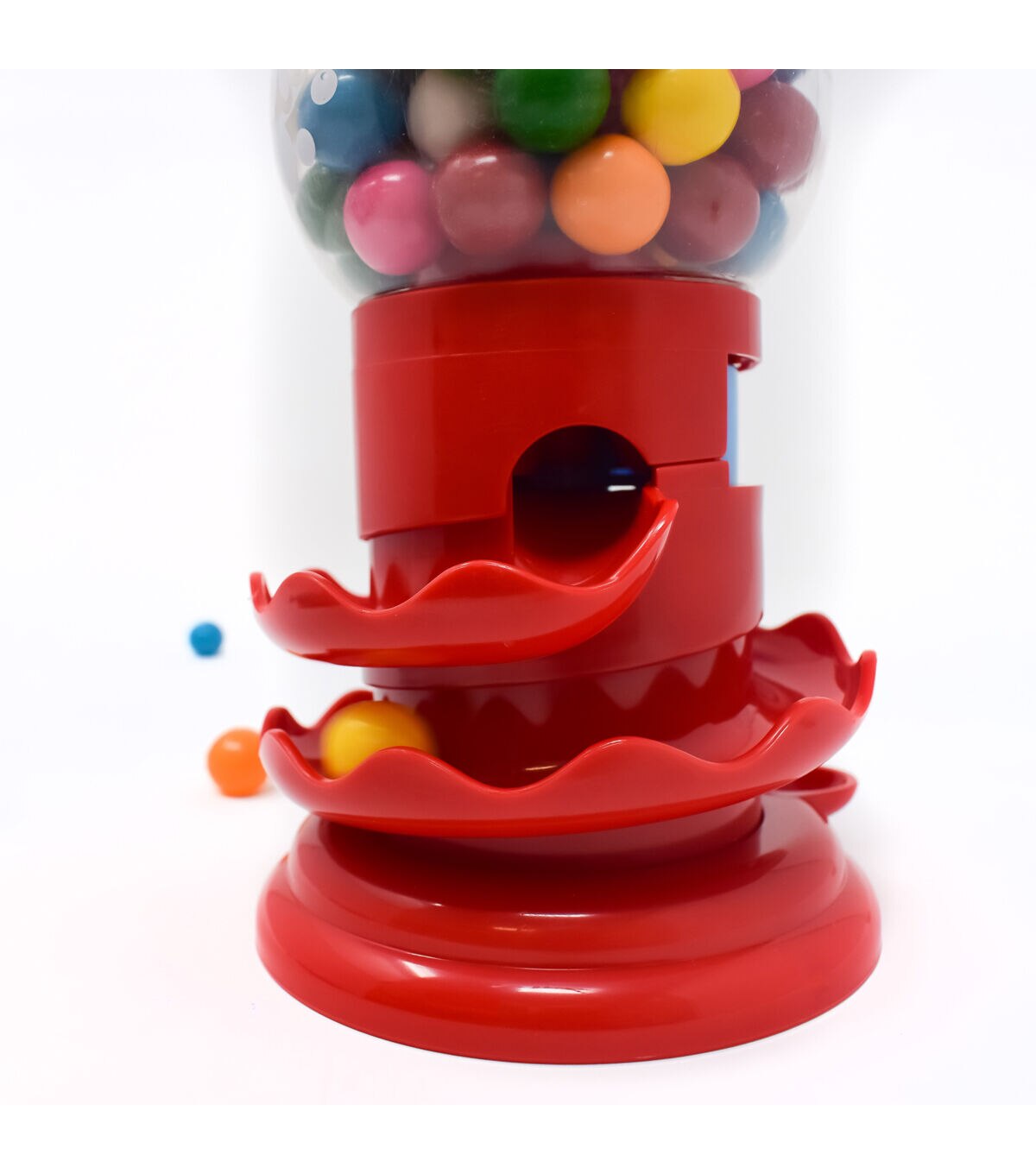 - Push the knob to send the gumball swirling and twirling down to the delivery tray. The external spiral slide is a fun way to dispense the gumballs.