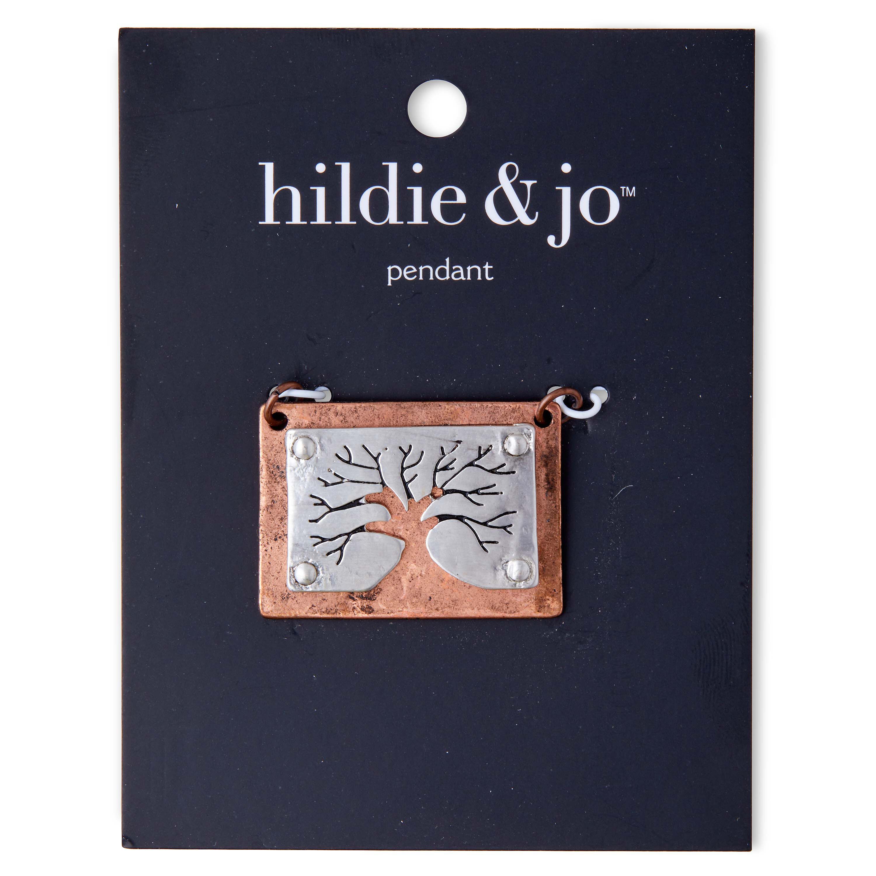 Create a new style statement with the hildie & jo Tree Cut Out Rectangle Pendant. This unique pendant has a rectangular shape and is etched with the silhouette of a tree. It will make a perfect addition to your contemporary jewelry collection and also a beautiful gift for someone close.