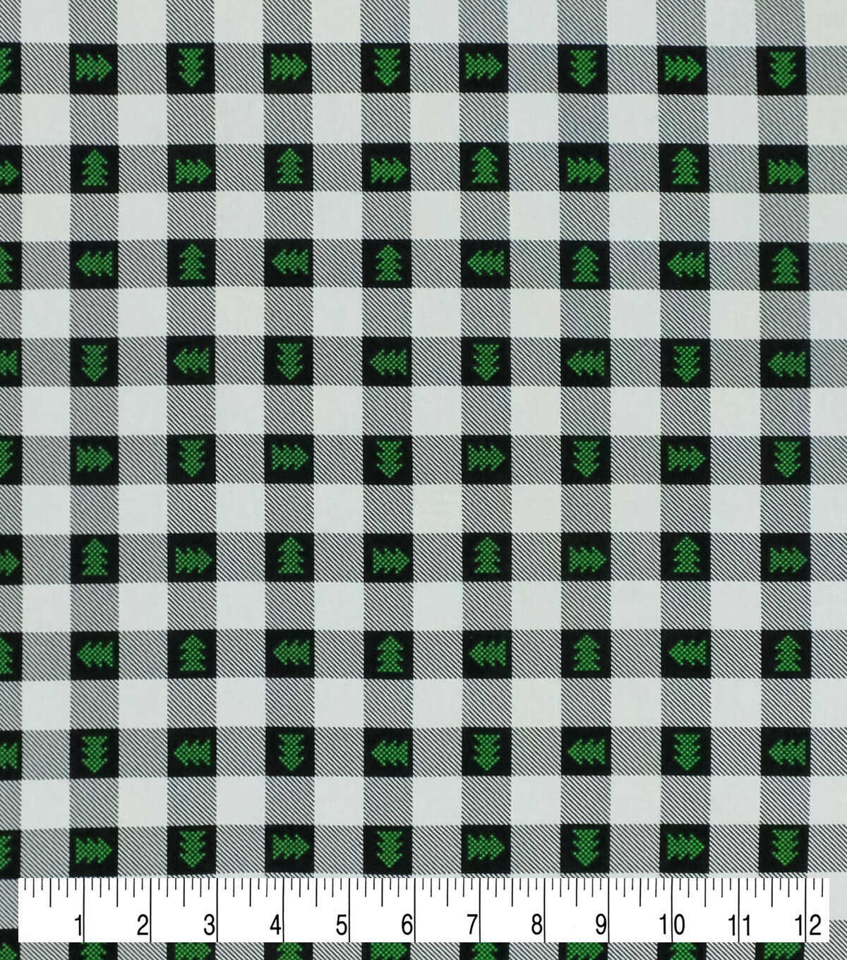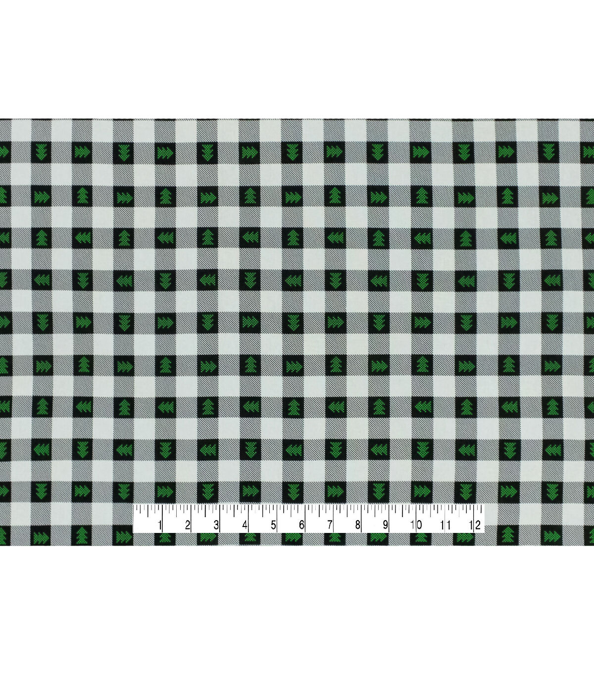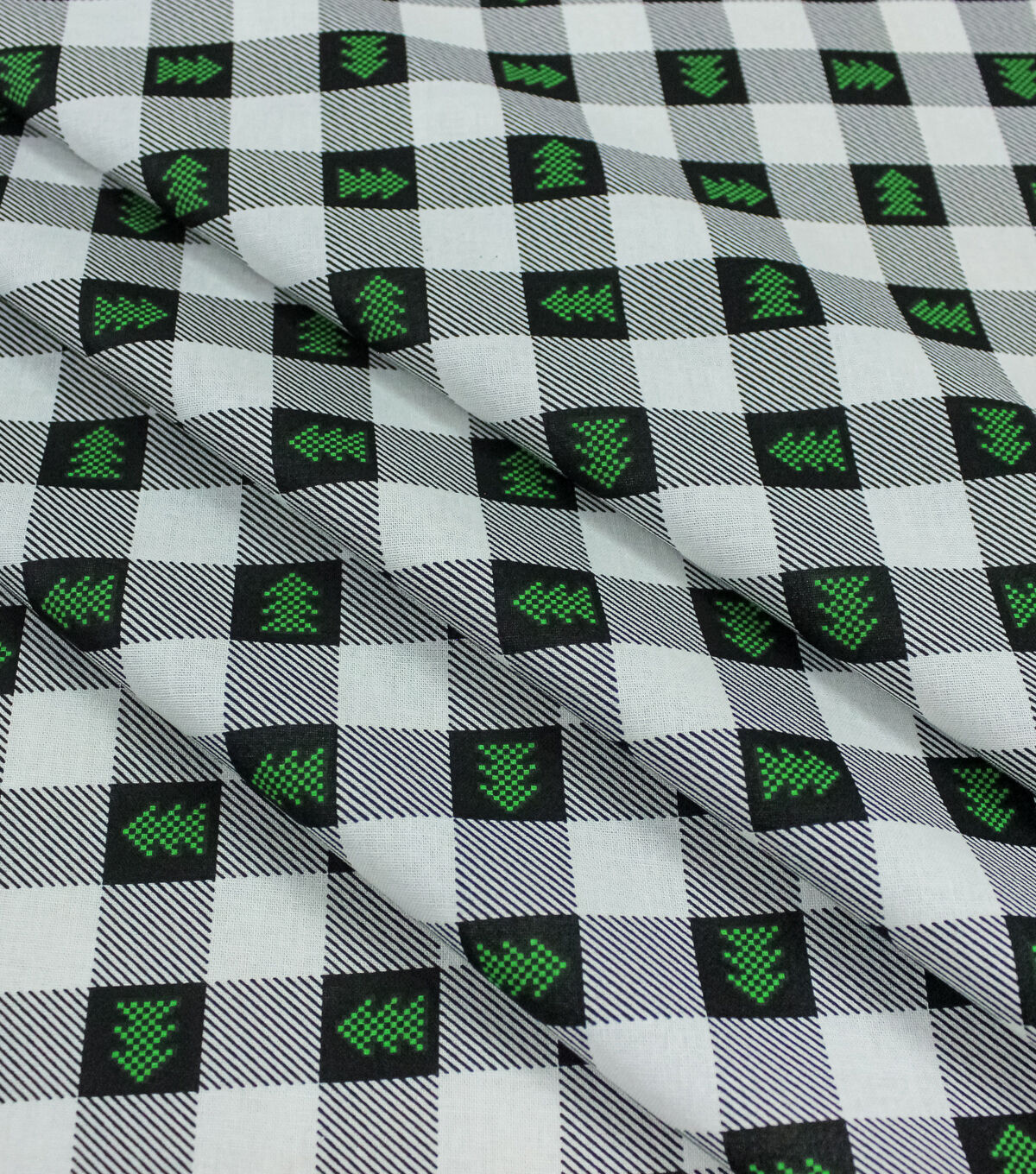 • Trees on Black & White Plaid Christmas Cotton Fabric