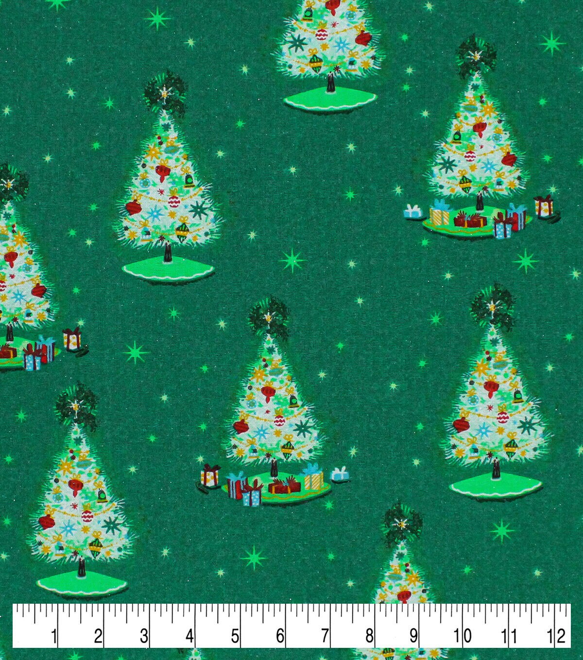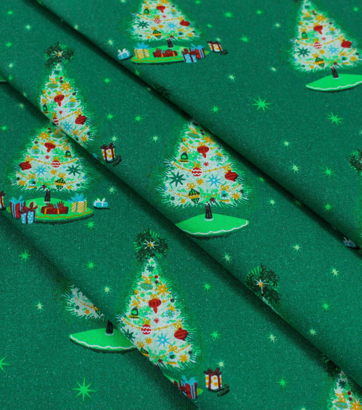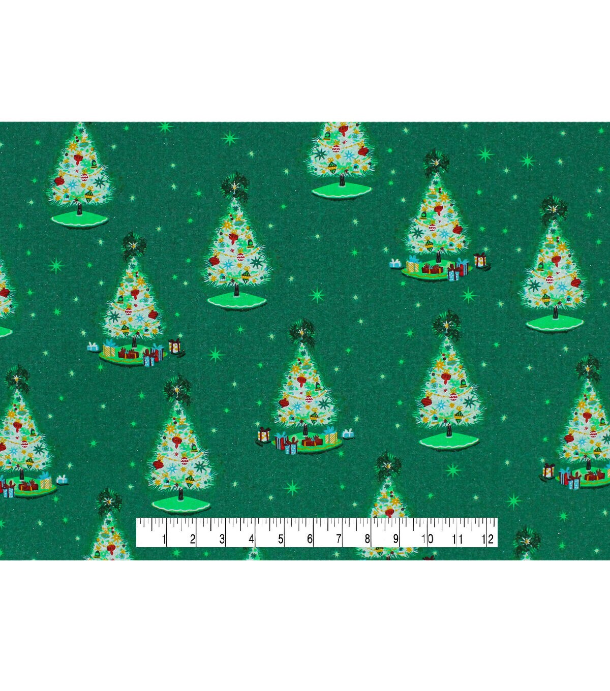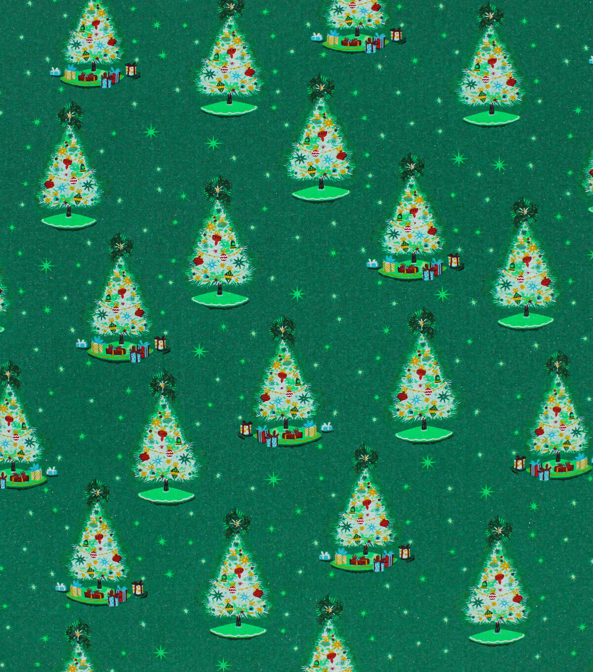 Get in the Holiday Spirit with Trees on Green Christmas Glitter Cotton Fabric