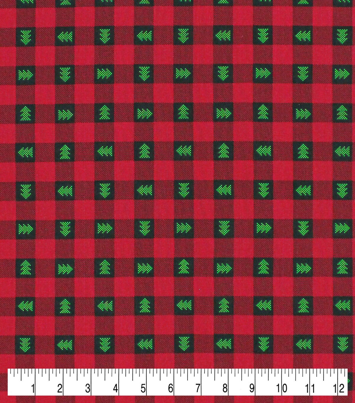 • Trees on Red Plaid Christmas Cotton Fabric