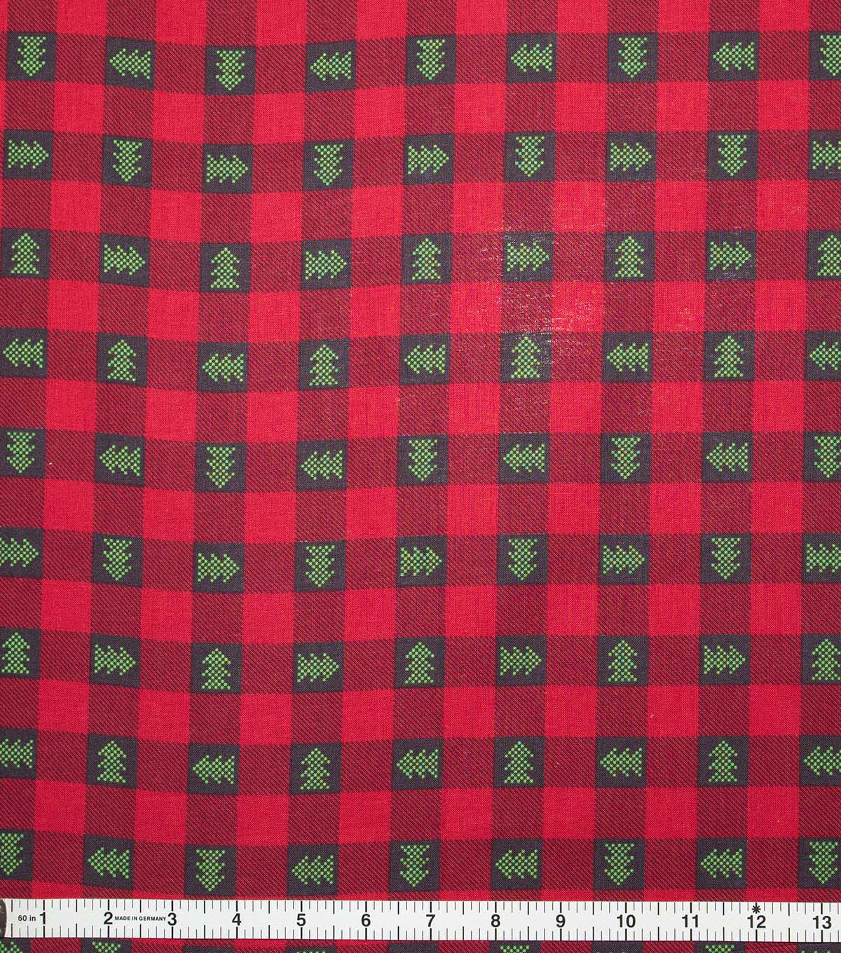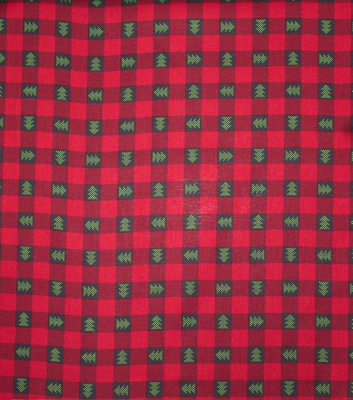 Trees on Red Plaid Christmas Cotton Fabric