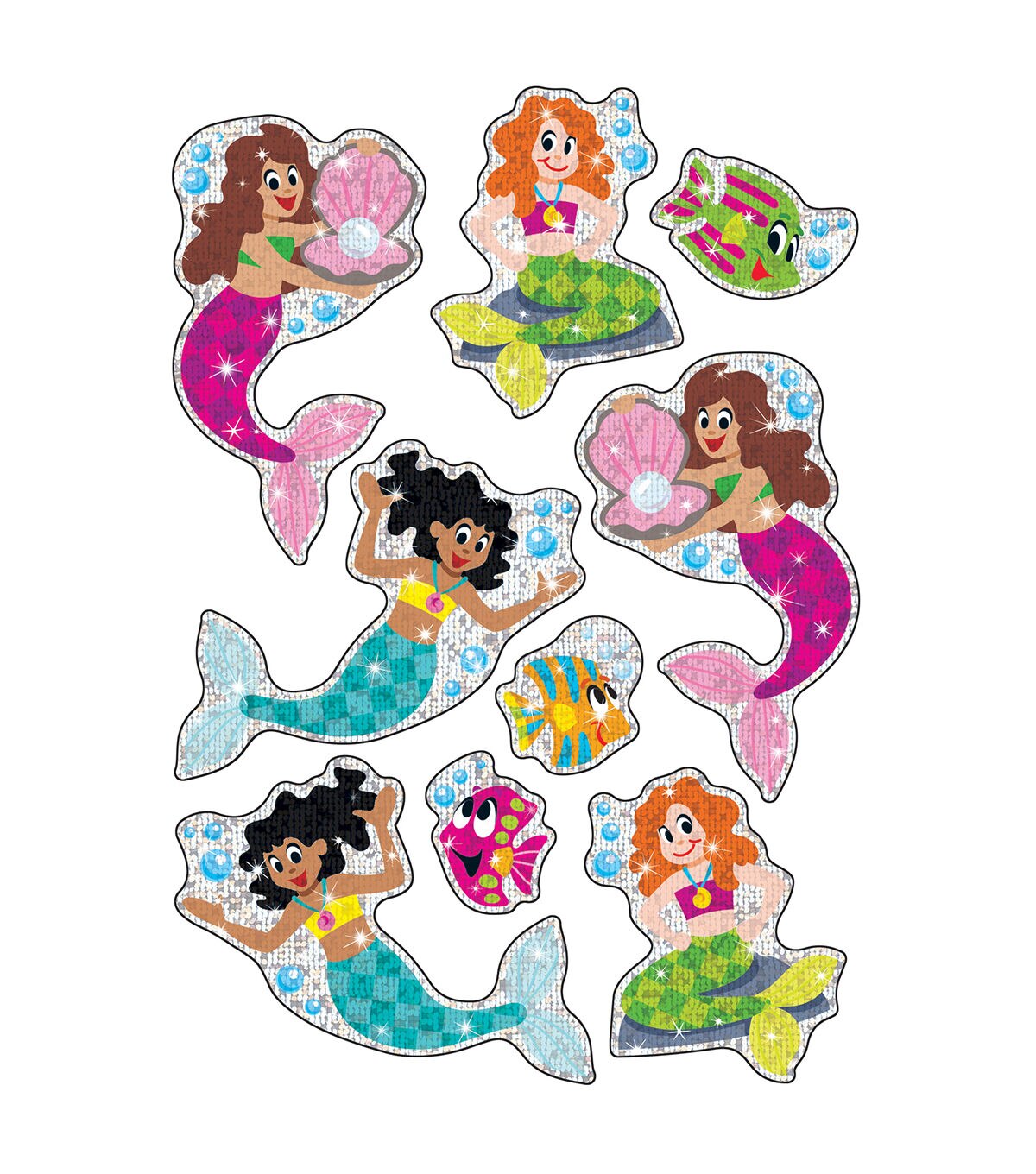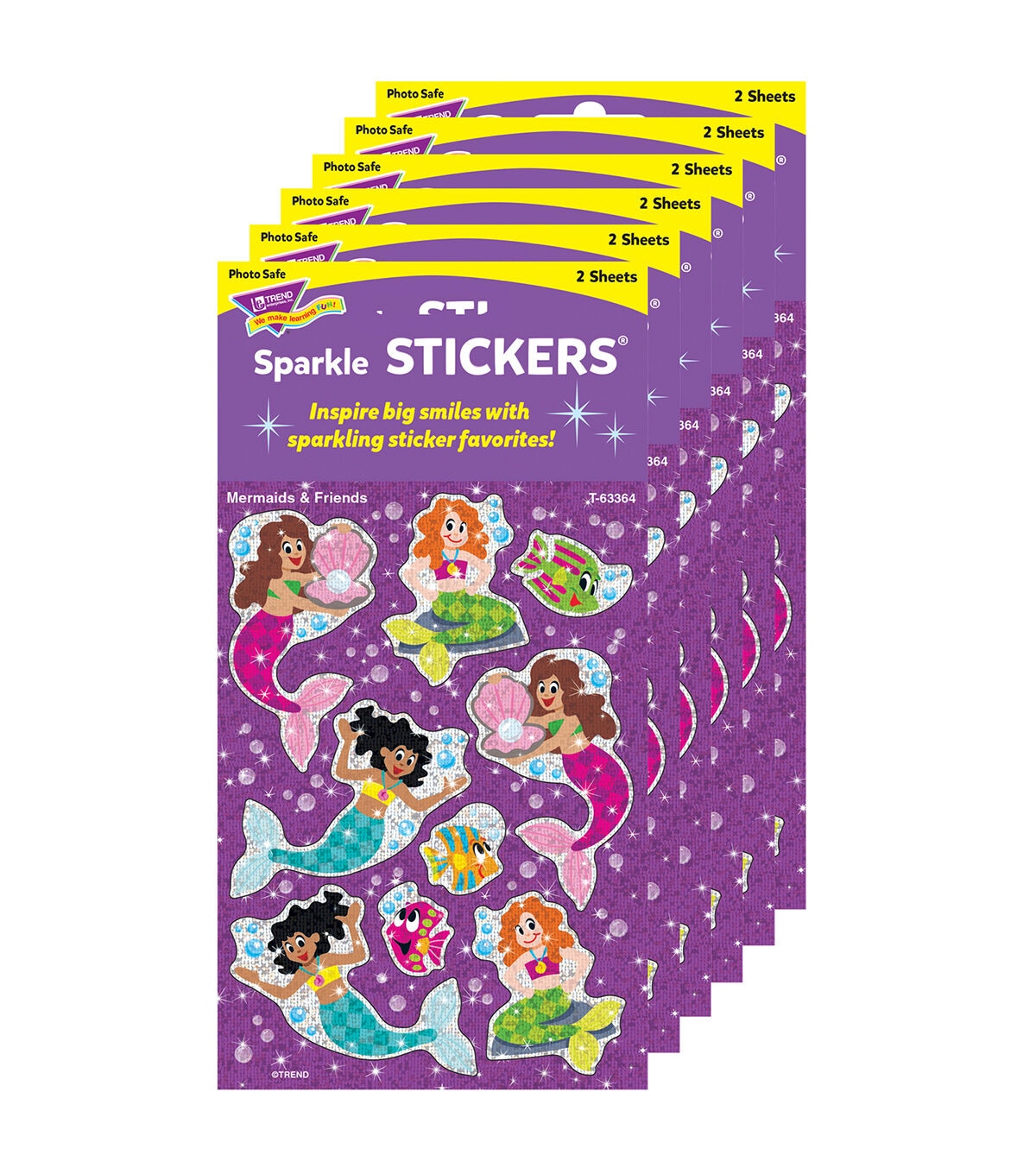 Delight kids of all ages with shimmering favorites. Use to motivate and reward progress, and add sparkle to journals, scrapbooks, and craft projects. These large-shaped stickers are acid free, nontoxic, and safe for use on photos. Each pack includes 18 stickers in 9 designs. Sold as 6 packs for a total of 108 stickers.