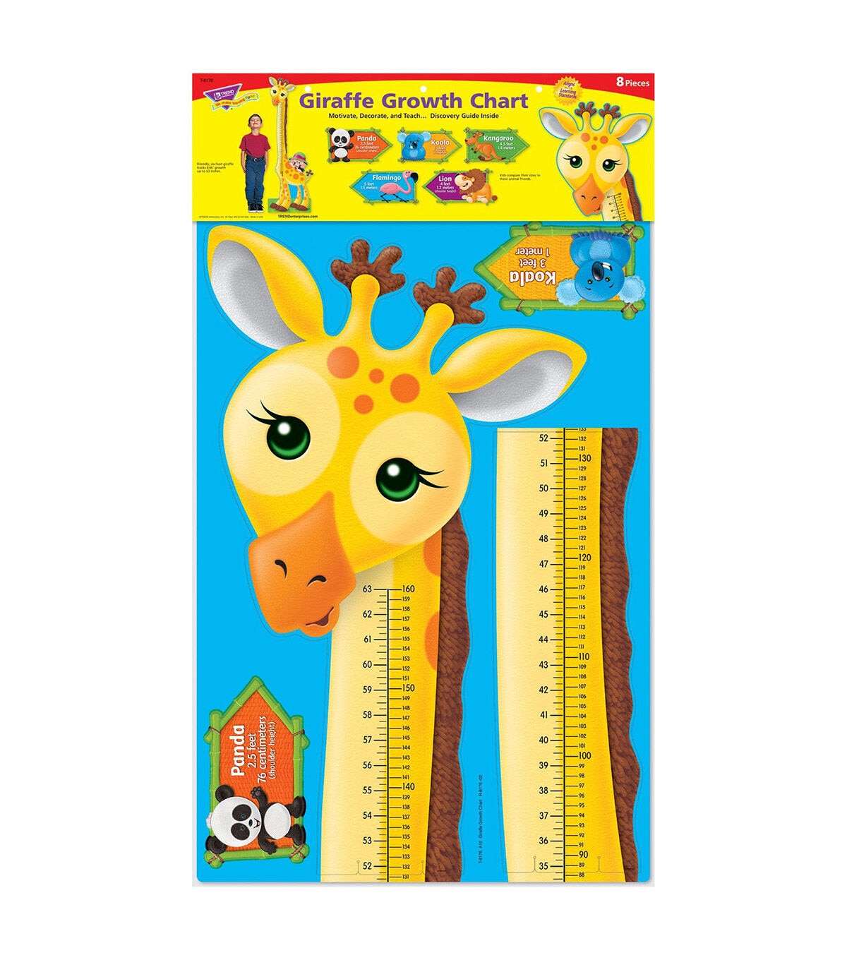 Track growing children! Includes 3-piece giraffe, 5 height cards, and downloadable recording chart. Measure in inches and centimeters. 8 pieces; giraffe is 6' tall assembled. Includes a Discovery Guide with creative activities that teach and delight! Coordinates with the Monkey Mischief Collection.