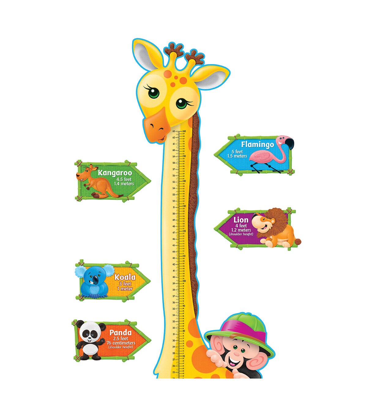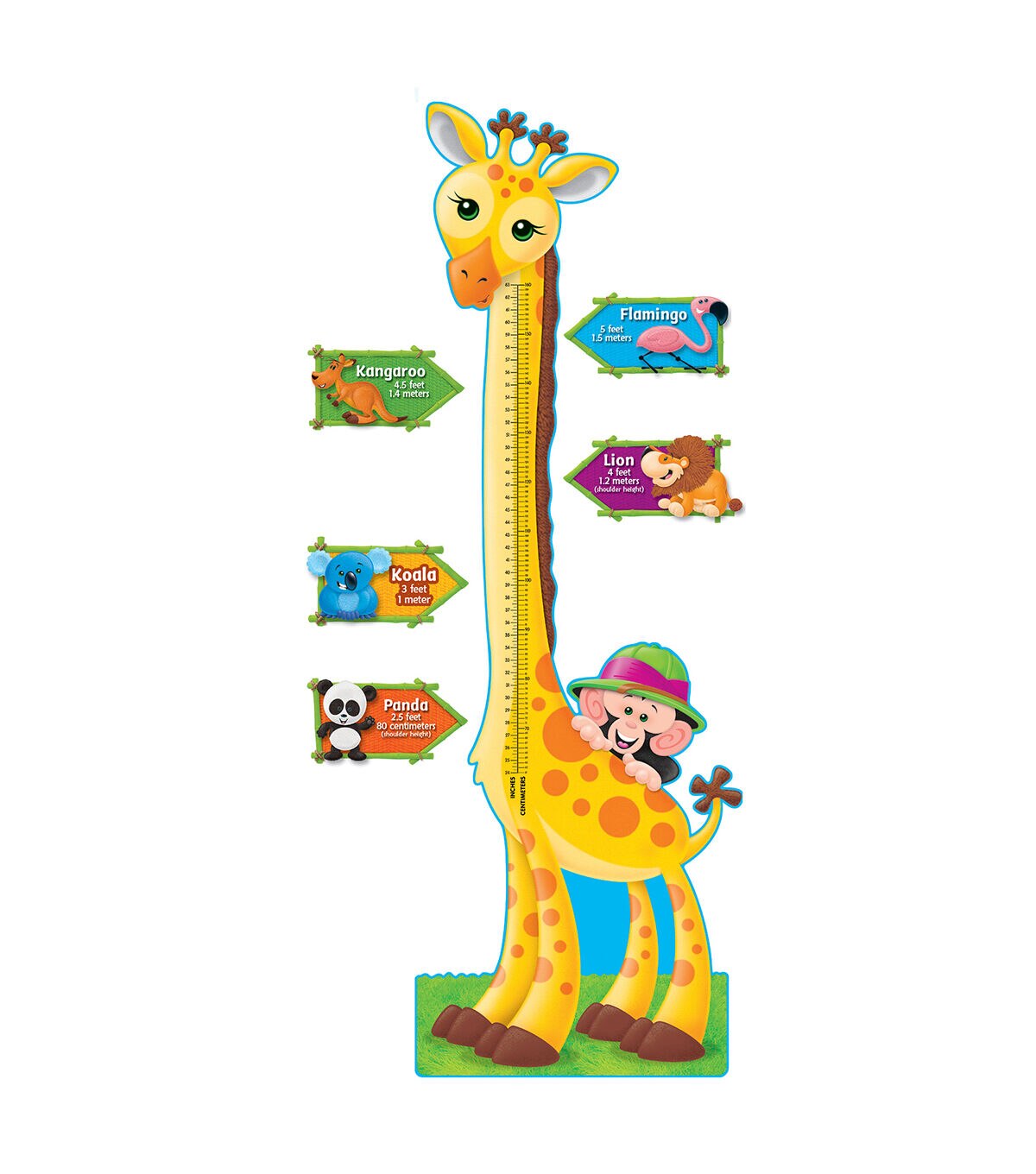 - Colorful growth chart with six-foot giraffe and charming jungle animals with equivalent heights.