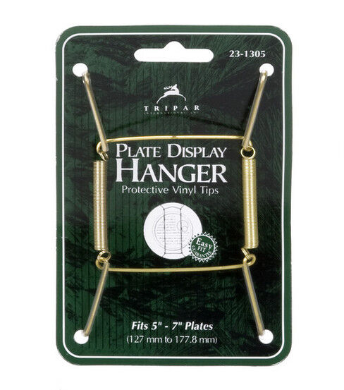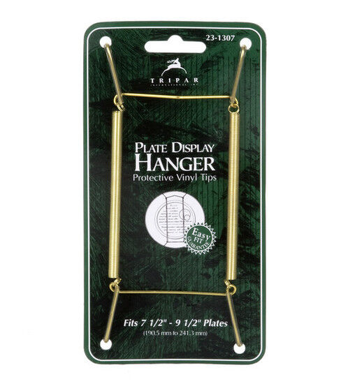 Display your beautiful plate collection using the Tripar Plate Display Hanger 3 Sizes and protect them for years of use! These plate display hangers feature vinyl tips and sleeves that prevent scratches on the decorated rims of your plates. They also feature flexible brass wires to keep the plates in place. Its hanging bracket provides added security while a lacquered brass finish resists tarnishing. The pack includes three brass plate display hangers of different sizes that can hold round, oval, or scalloped plates and tiles. This plate hanger accommodates plates that measure between 7.5 to 9.5-inches.