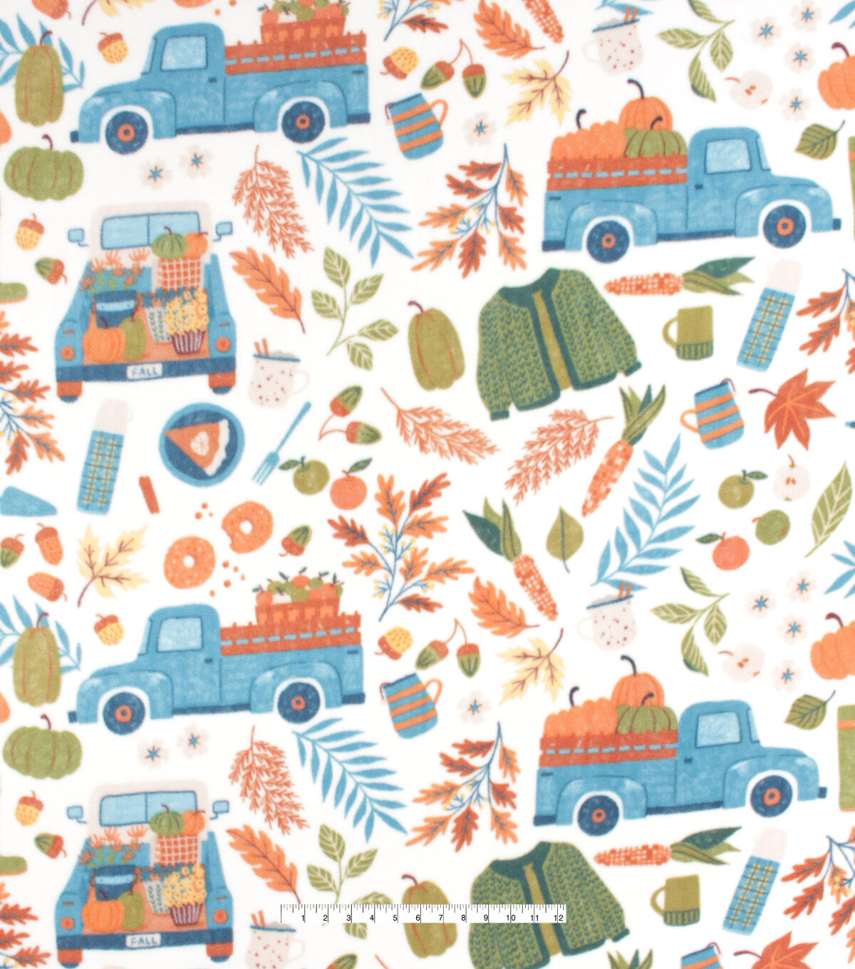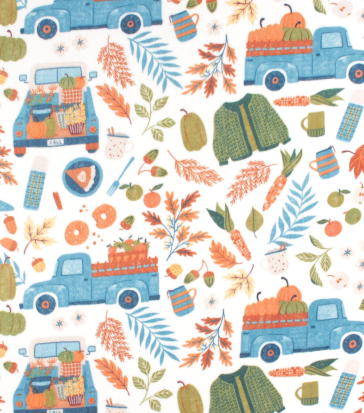 • Trucks & Leaves Anti Pill Fleece Fabric