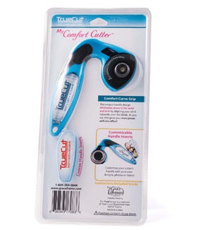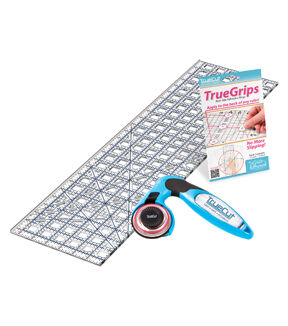 The TrueCut Quilter’s Combo includes a 45mm My Comfort Cutter rotary cutter, a 6.5 x 24.5” ruler, and 1 pack of TrueGrips non-slip adhesives. This 3-part bundle perfectly showcases the beauty of the TrueCut cutting system: the TrueGrips keep the ruler from moving around as you cut, while the rotary cutter guide and ruler track interlock to give you perfectly straight cuts every time. Once you try the TrueCut cutting system for yourself, you’ll never want to go without it!