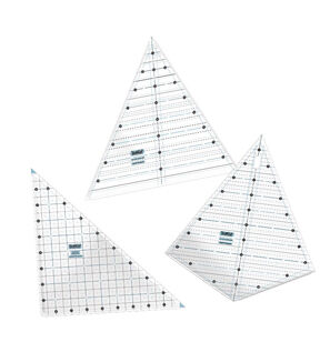 This bundle includes the Right Triangle Ruler, Kite Ruler, and Equilateral Ruler! Each of these triangle TrueCut rulers have specific angles to make cutting shapes a breeze. Like all TrueCut rulers, these rulers feature a patented track and guide system for use with TrueCut rotary cutters, but they can also be used with any other rotary cutter on the market.