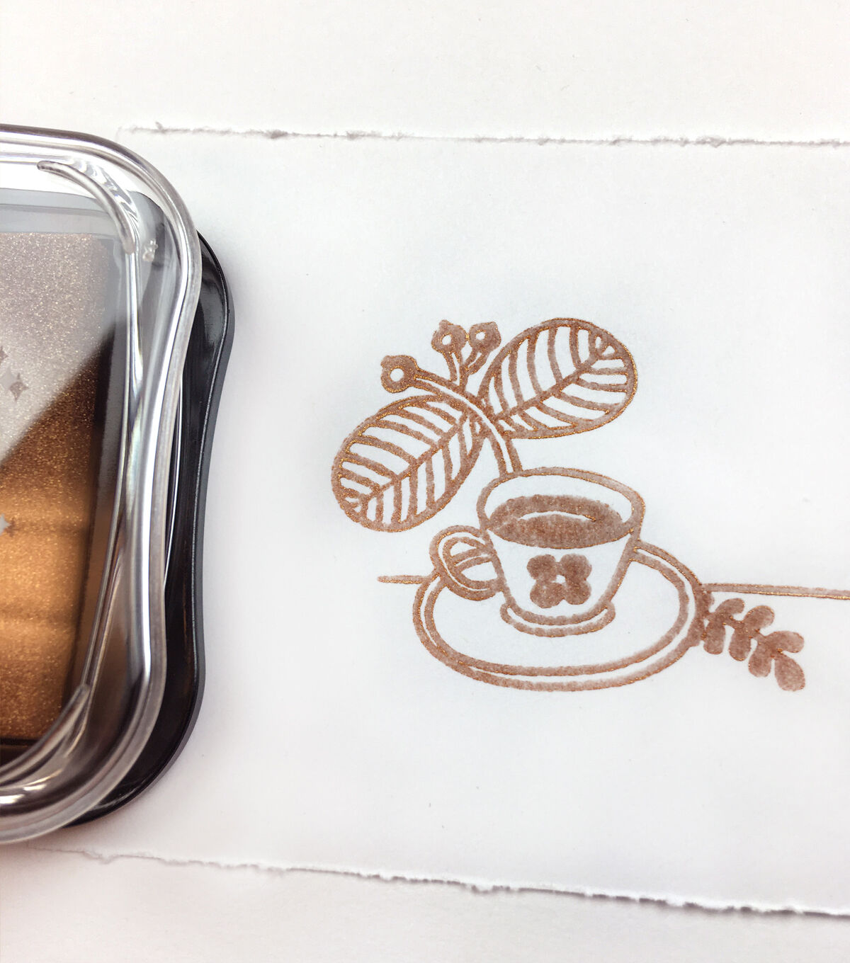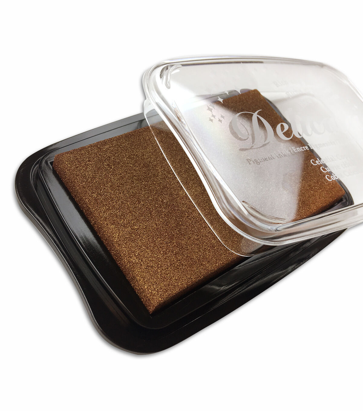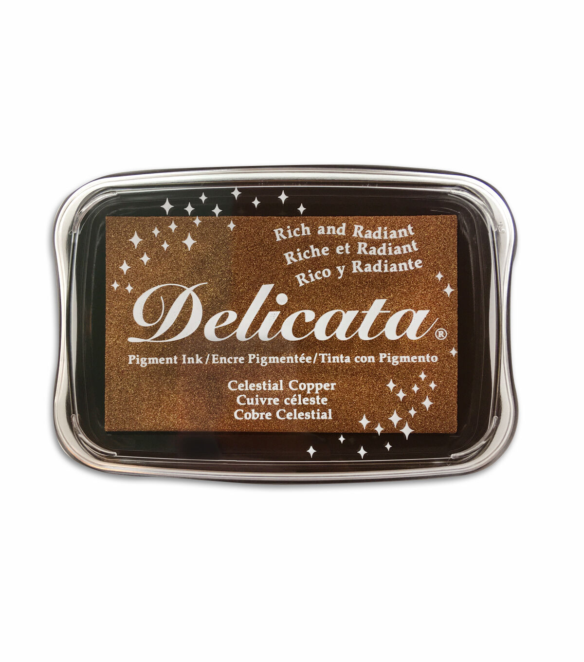 Add eye-catching color to stamped designs, using the Delicata Pigment Ink Pad-Celestial Copper. This innovative, world class metallic ink is richly hued for a vibrant look, and doesn’t tarnish over time. It dries completely for smudge proof results. The pack contains one 4 x 2.5-inch ink pad.
