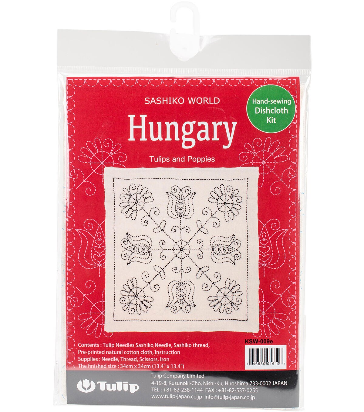Create a fun and colorful piece of artwork to add to your home decor! This package contains one needle, thread, pre-printed natural cotton cloth and instructions. Design: Tulips And Poppies. Finished size: 13.4x13.4 inches. Imported.