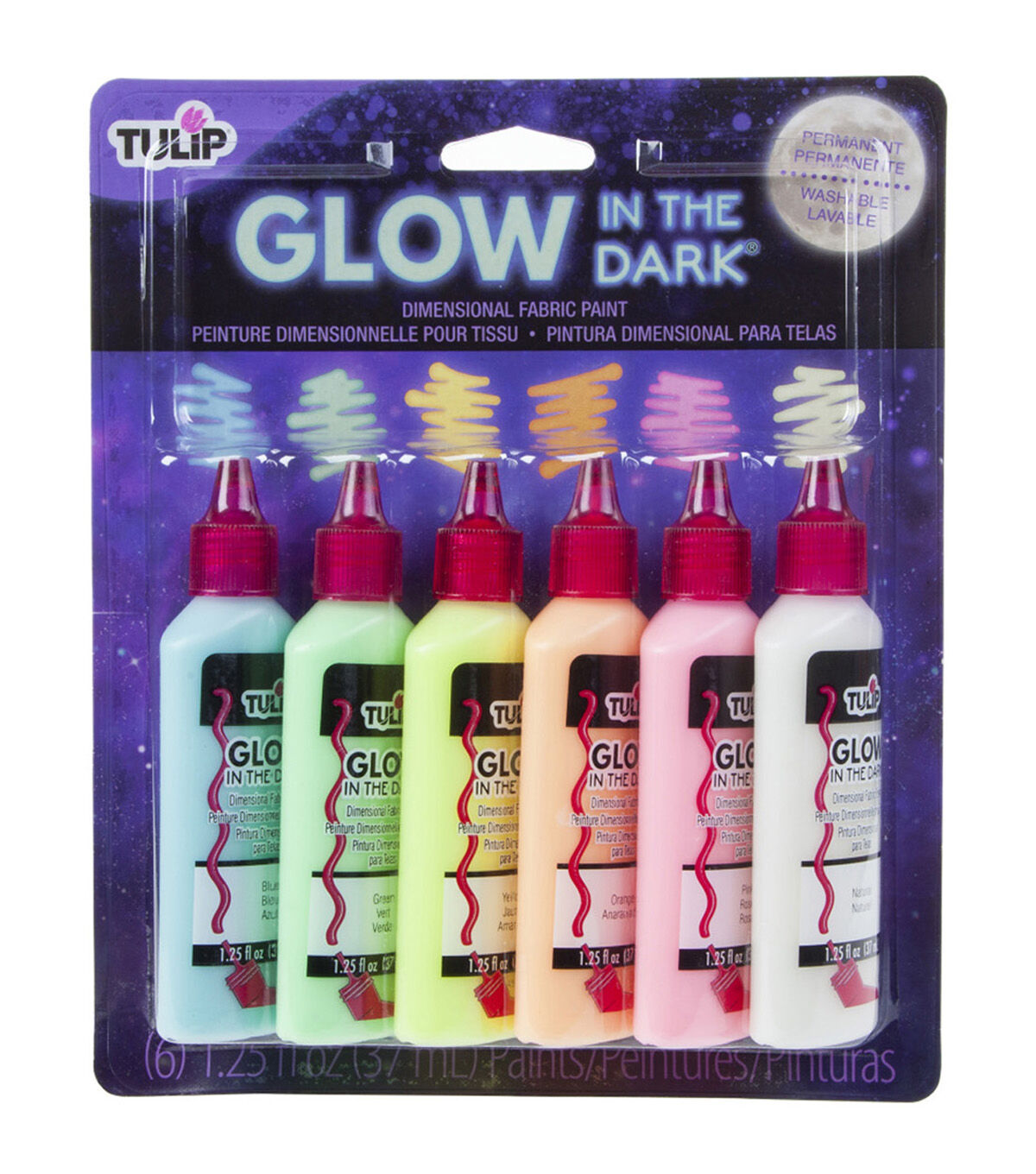 - Contains six 1-1/4-ounce bottles in assorted glow-in-the-dark colors