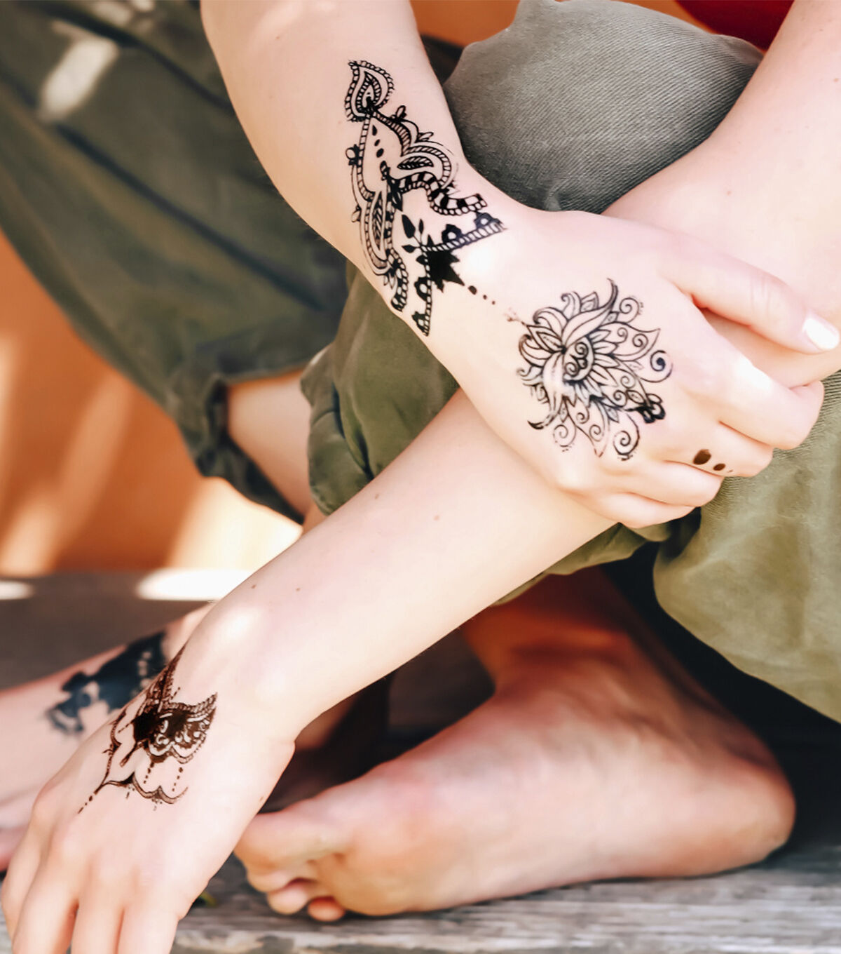 - Includes Everything You Need: This all-inclusive kit features 3 tattoo paints, 1 brush, setting powder, 8 stencil design sheets for anywhere on the body. Want to make your own henna designs? The tattoo paints feature a precision tip so you can create your very own designs.