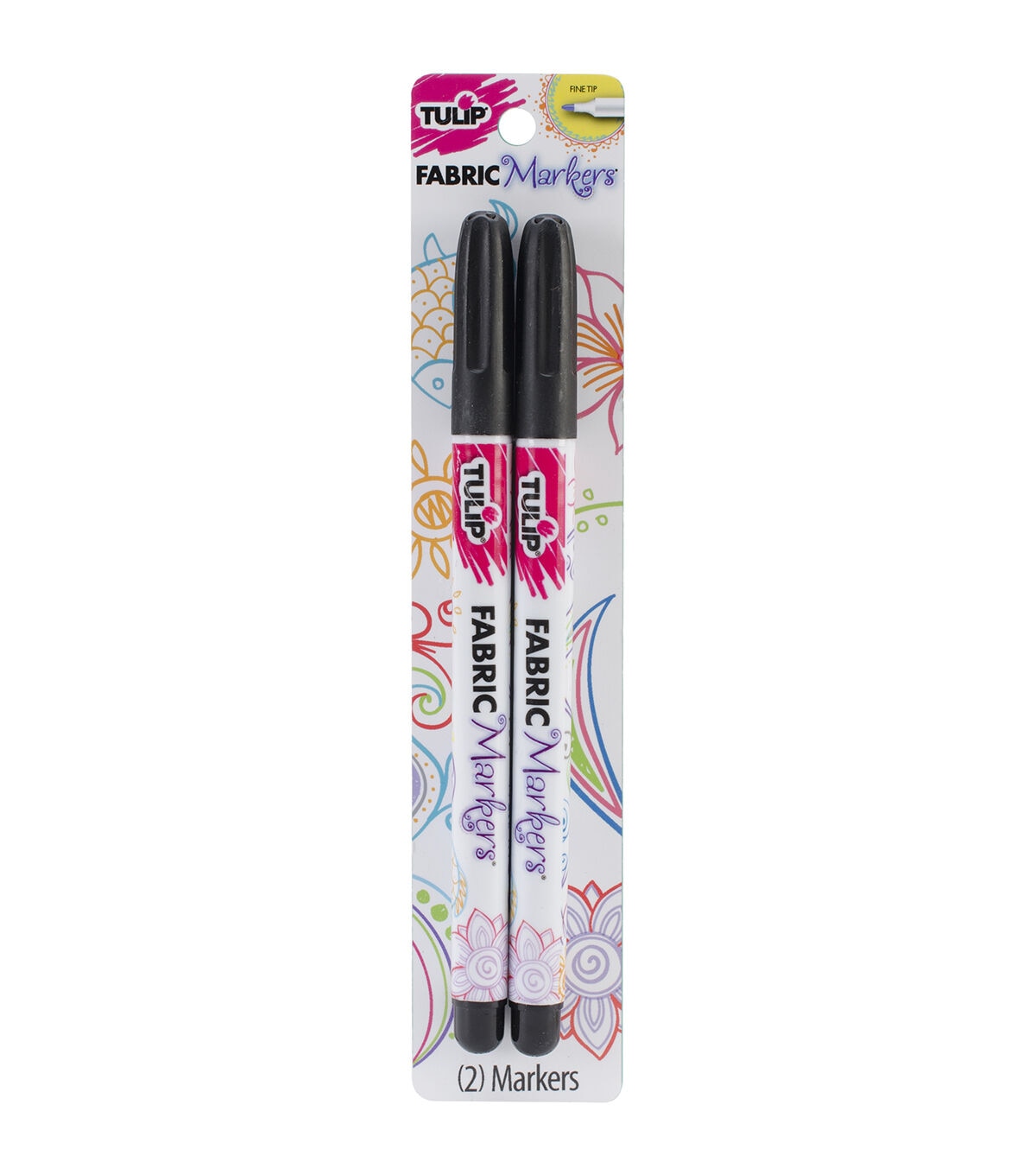 TULIP-Fine Writer Fabric Markers: Black. Create your own wonderful designs on t-shirts and more! This package contains two 5-3/4 inch fine tip black fabric markers. Best on white and light colored fabrics. Machine washable. Conforms to ASTM D 4236. Imported.