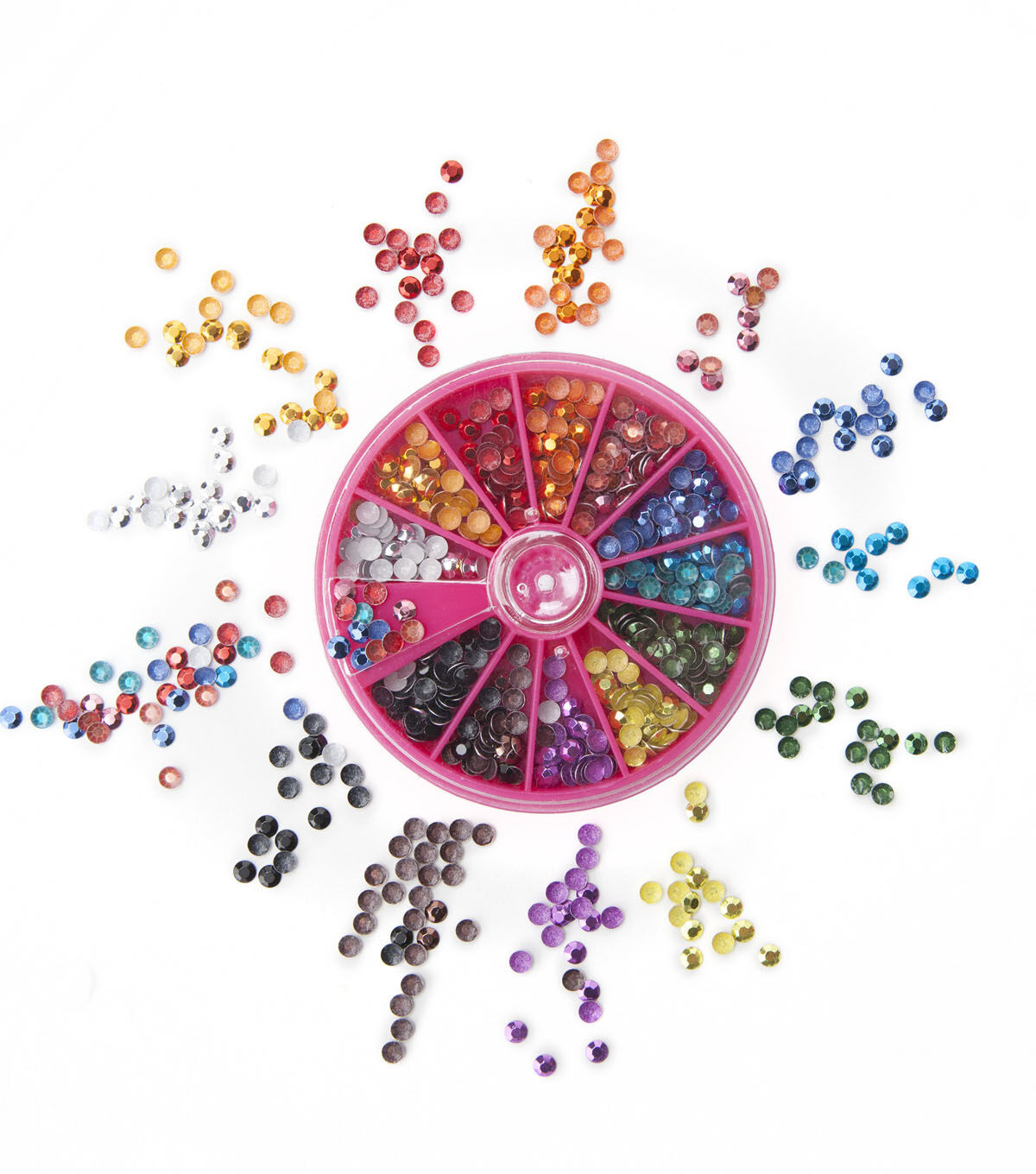 This wide spectrum of twelve jewel-tone colored Faceted Studs will add some wow to your projects! Tulip's Glam-It-Up! Iron-On Studs comes in a unique 3" jewel compact, filled with 600 4mm iron-on faceted reflective crystals. The Tulip Glam-It-Up Iron-On Studs are machine washable and permanent.