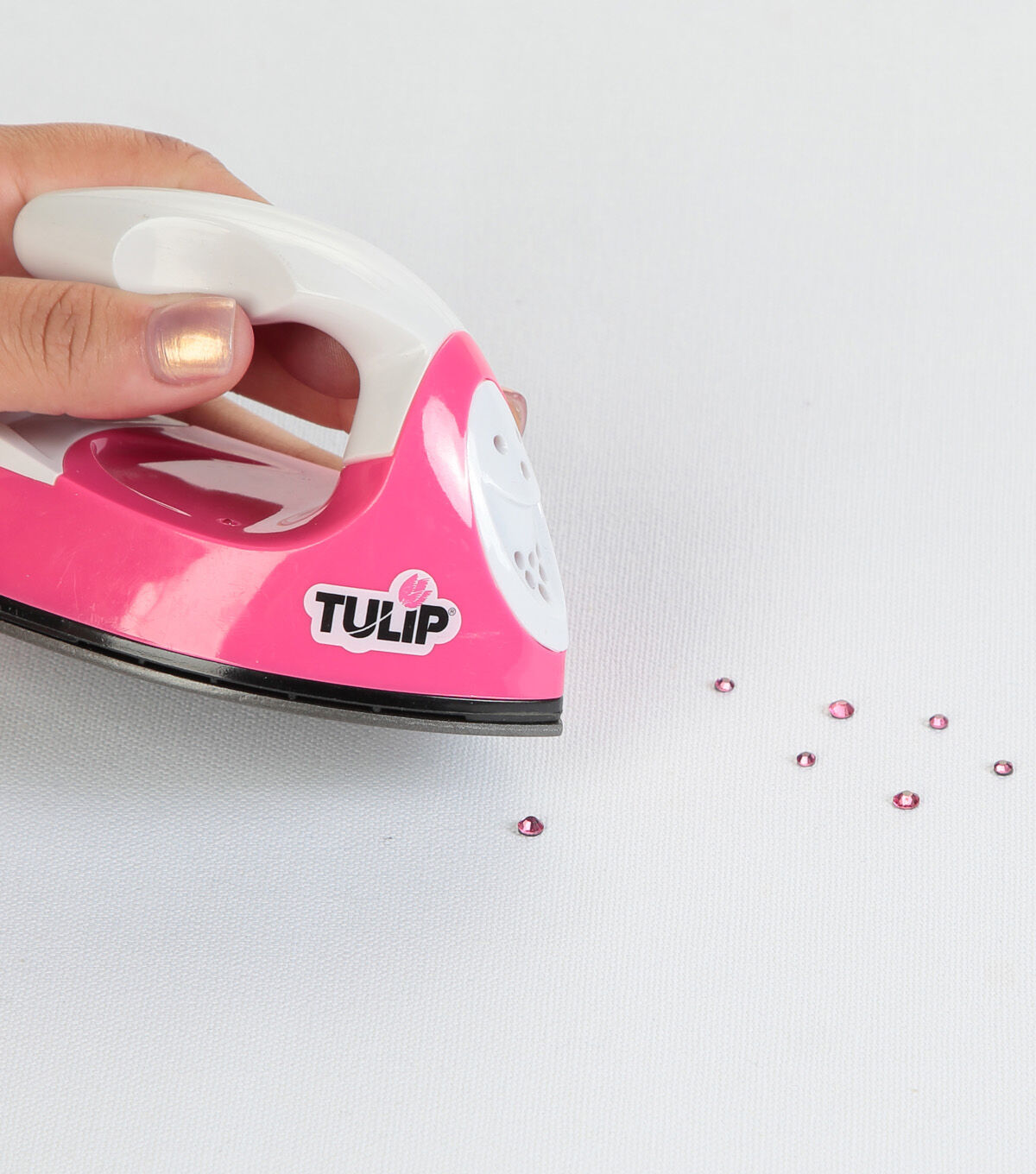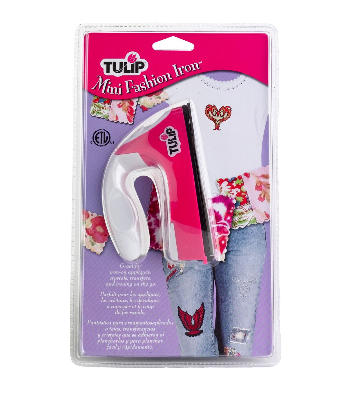 The Mini Fashion Iron is the perfect size for each Tulip Fashion Art iron-on product and the perfect size to stash in your purse, suitcase, glove box, office drawer, and any other small area. This Mini Fashion Iron has a lower wattage than household irons.